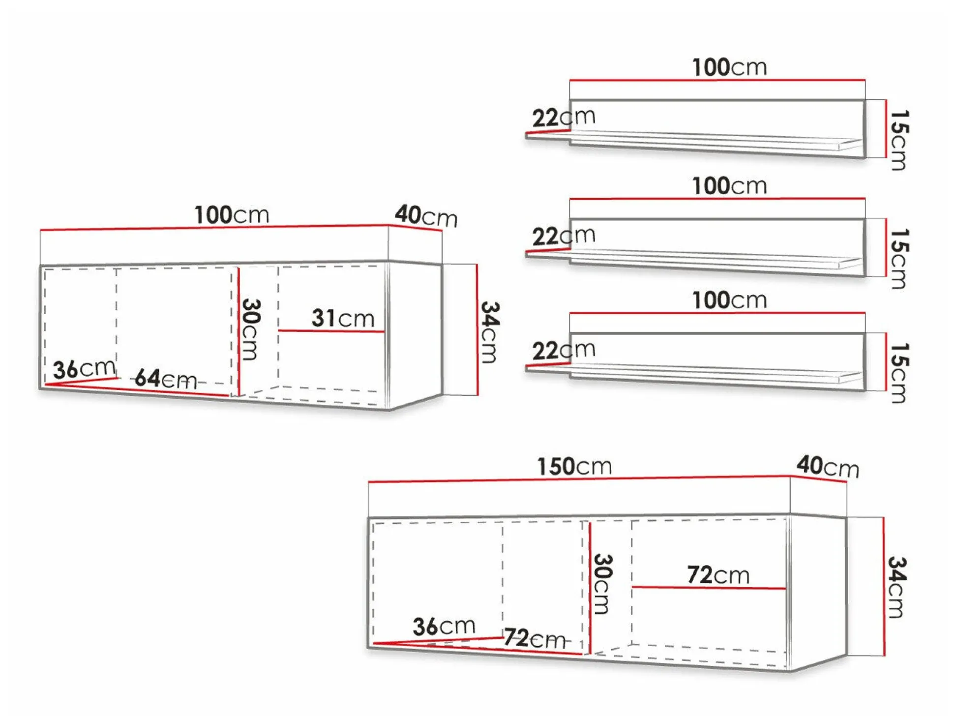 34 x 100 x 40; 34 x 150 x 40 cm