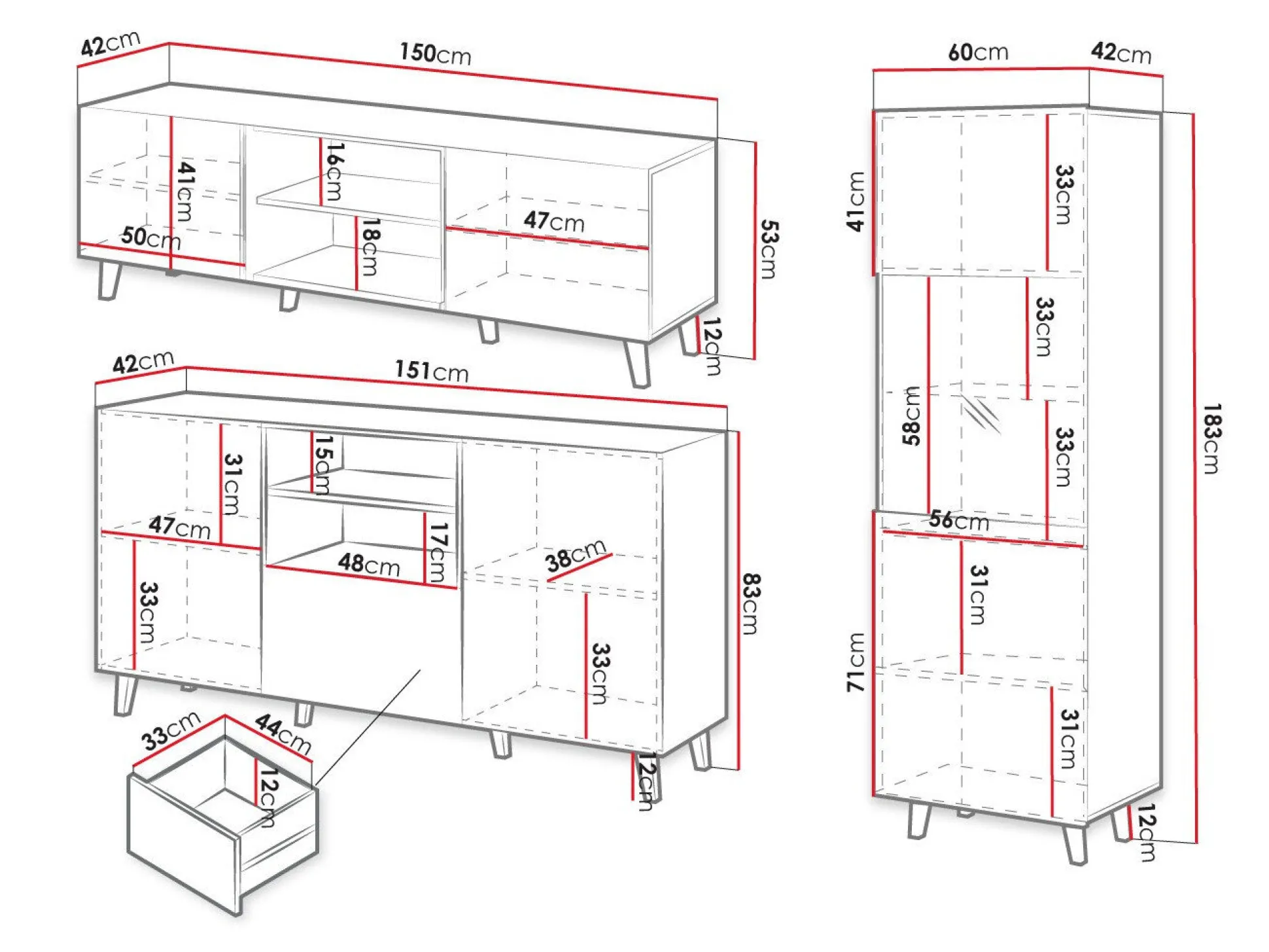 53 x 150 x 42 cm