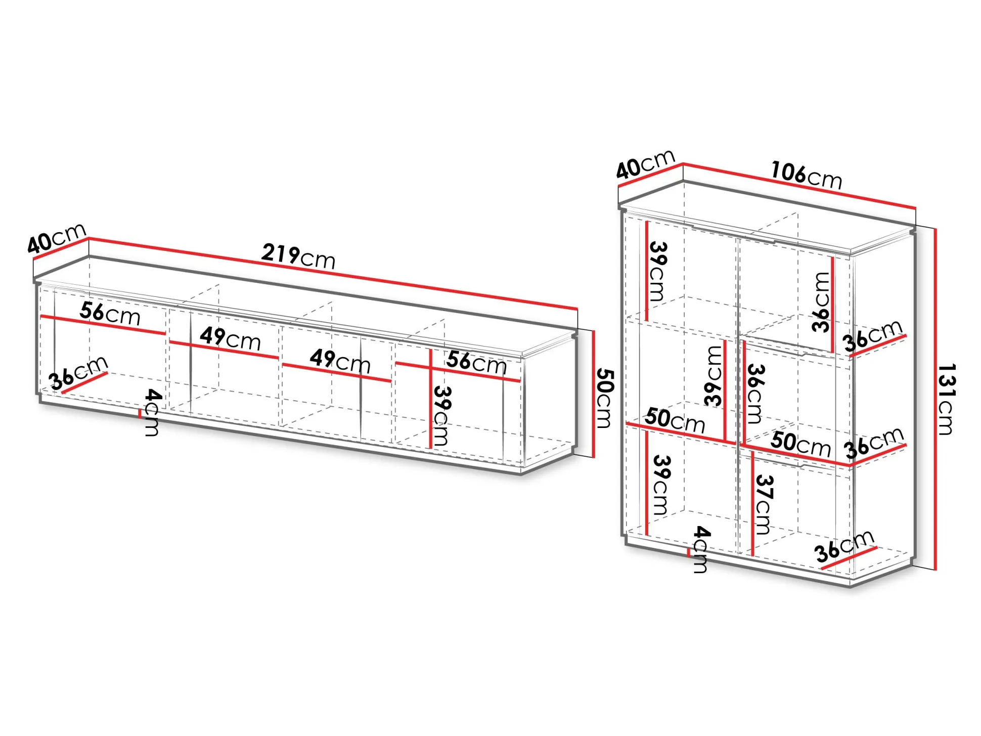 50 x 219 x 40 cm