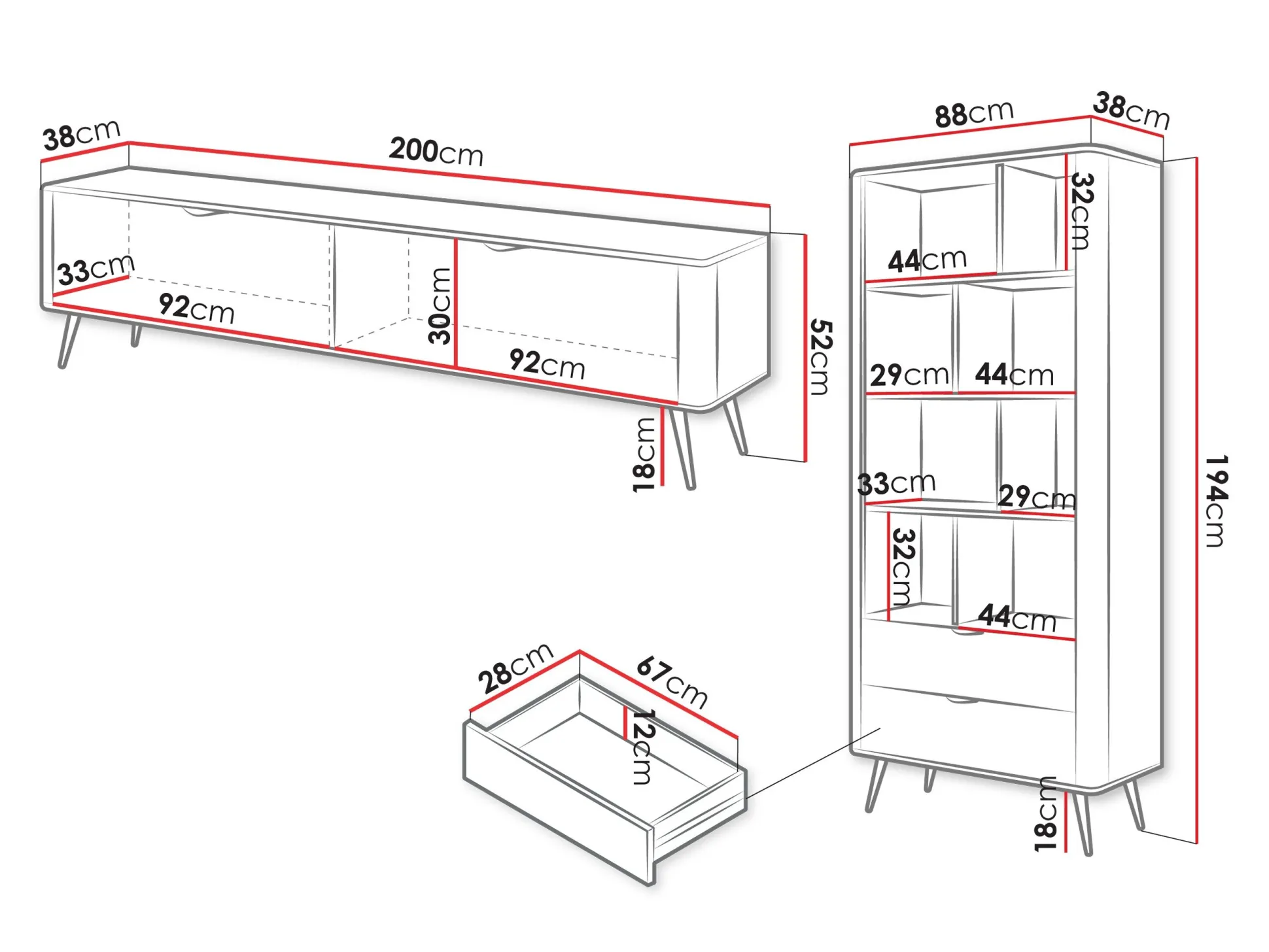 52 x 200 x 38 cm