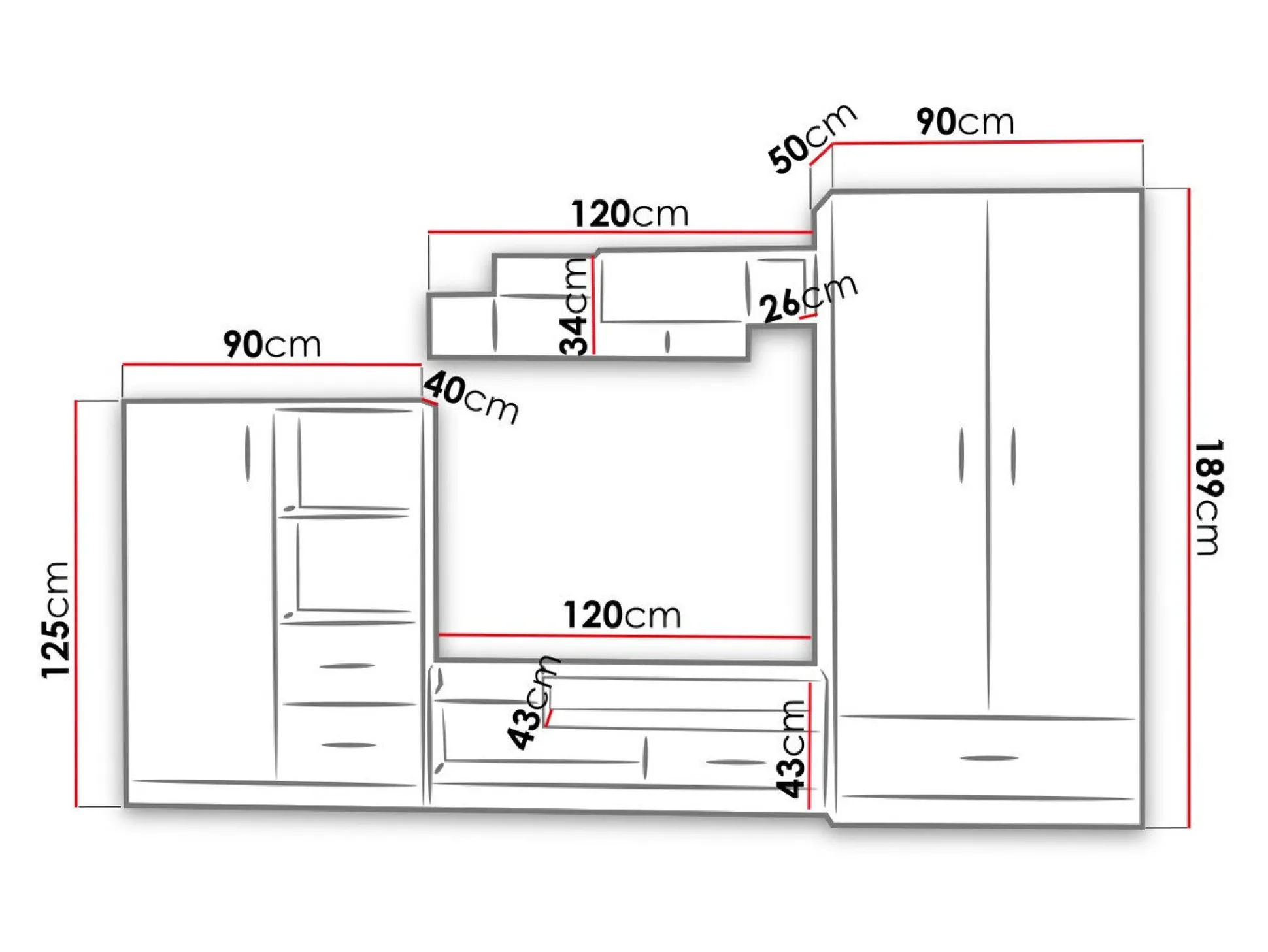 34 x 120 x 26 cm