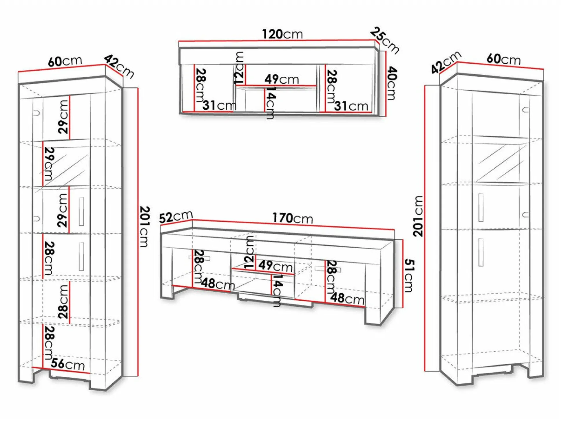 201 x 60 x 42 cm
