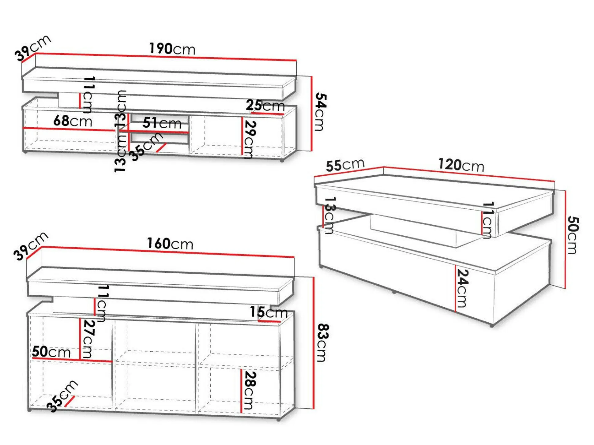 TV-bord dimensioner: