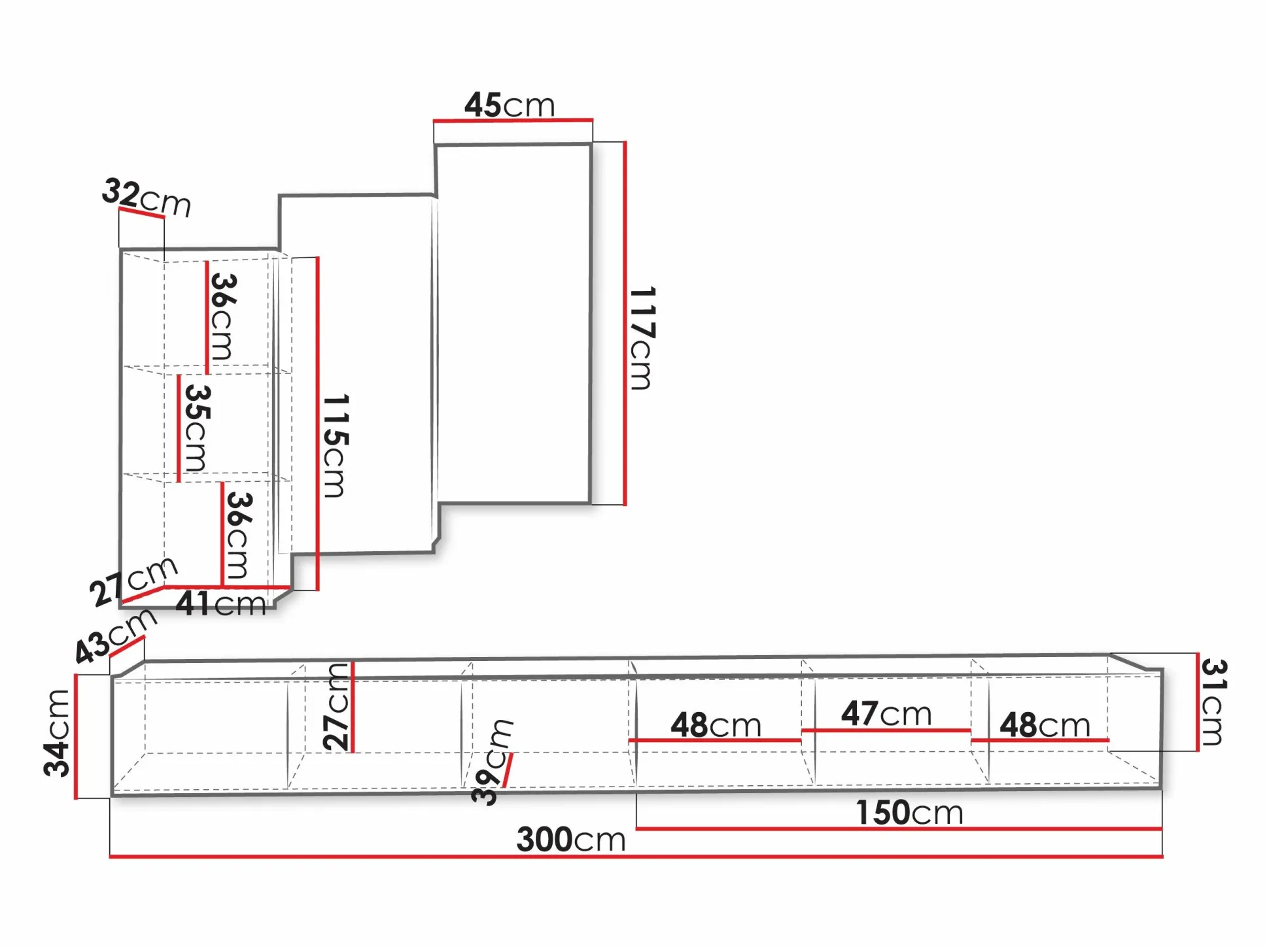 32 x 300 x 43 cm