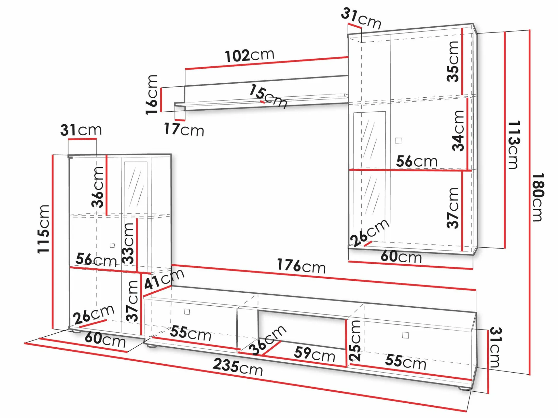 31 x 176 x 41 cm