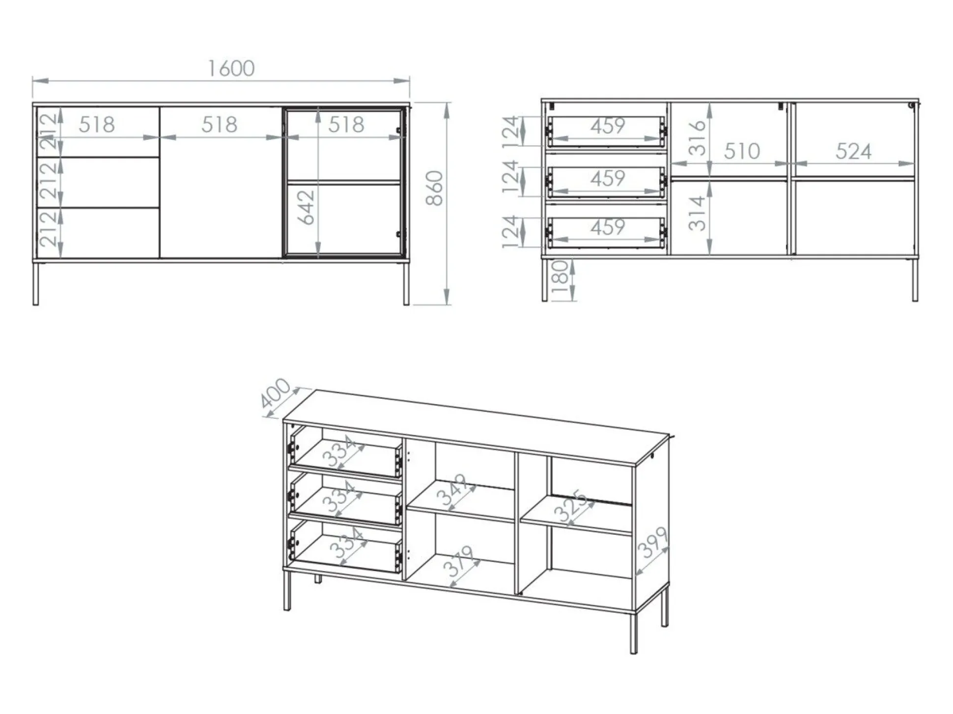86 x 160 x 40 cm