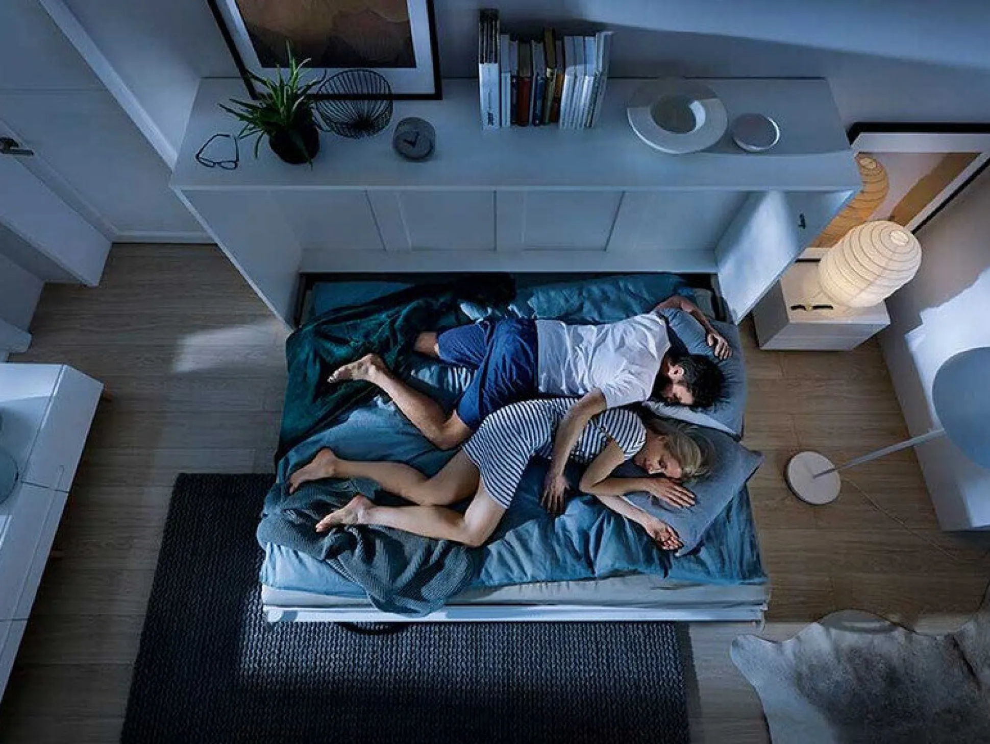 - Sengen skal fastgøres til væggen.
