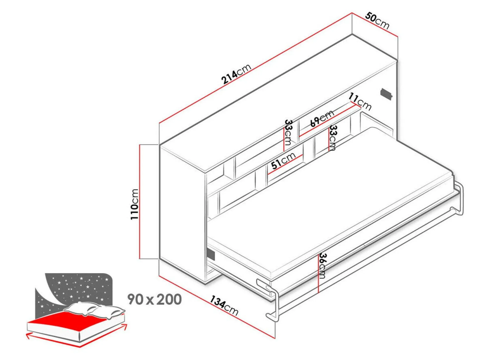 - 90 x 200 cm