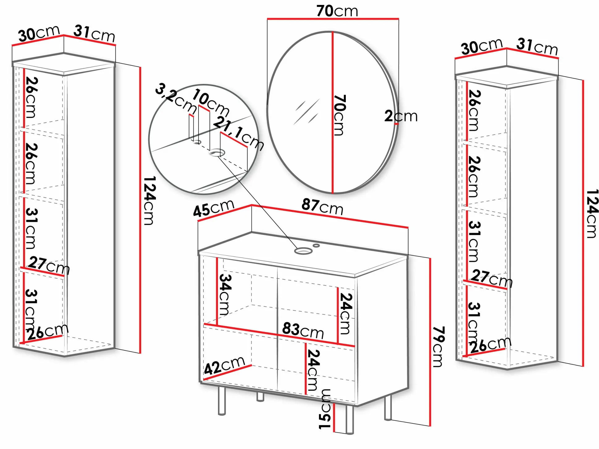 124 x 31 x 30 cm