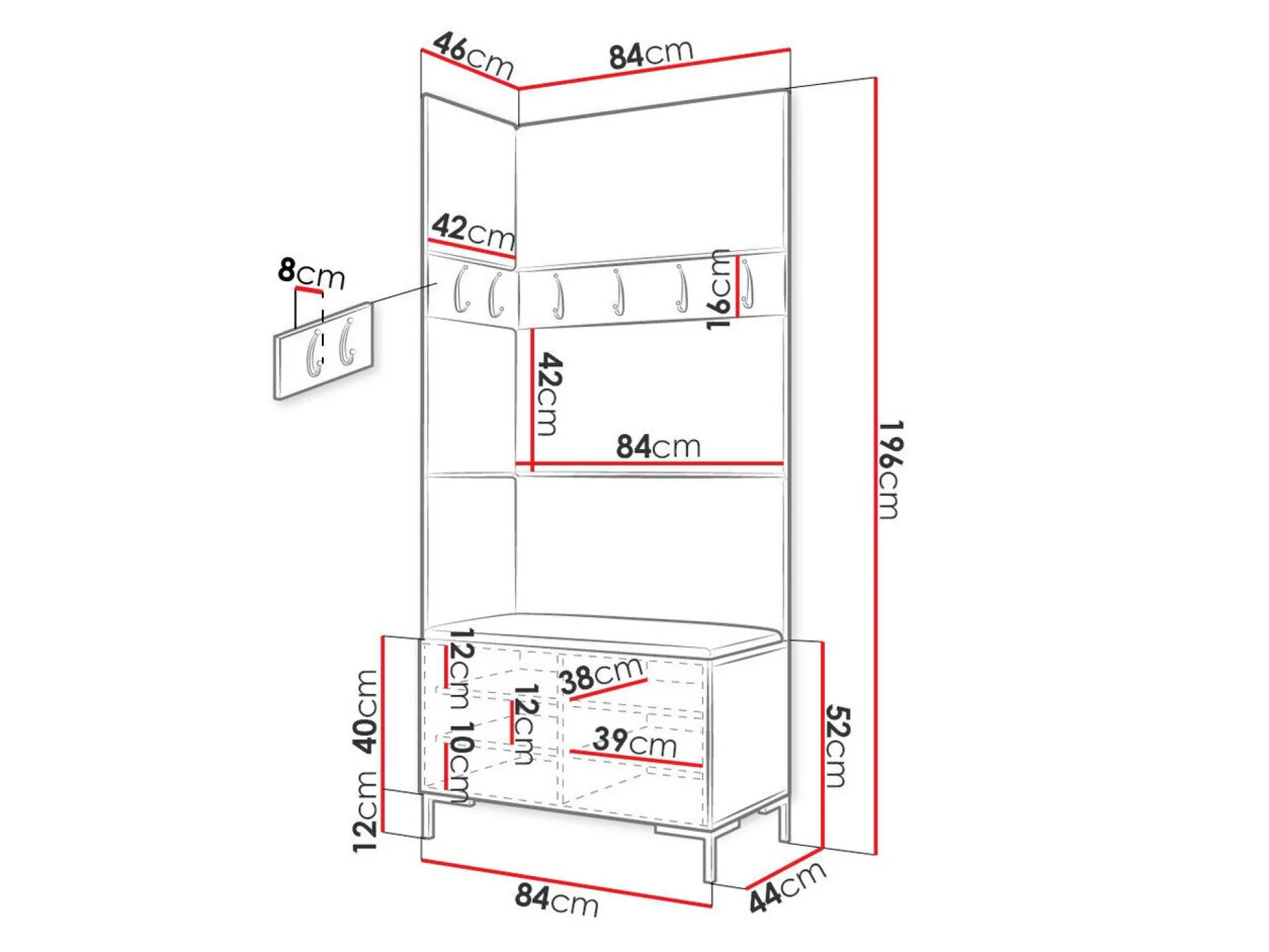 16 x 84 x 8; 16 x 42 x 8 cm