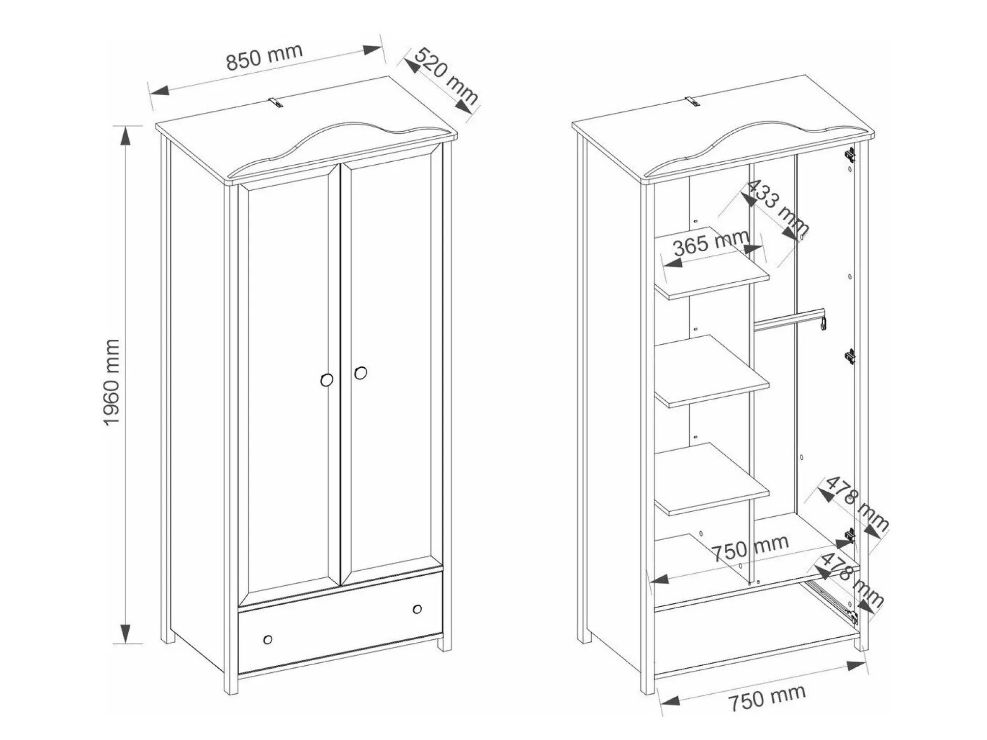 Bredde 85 cm