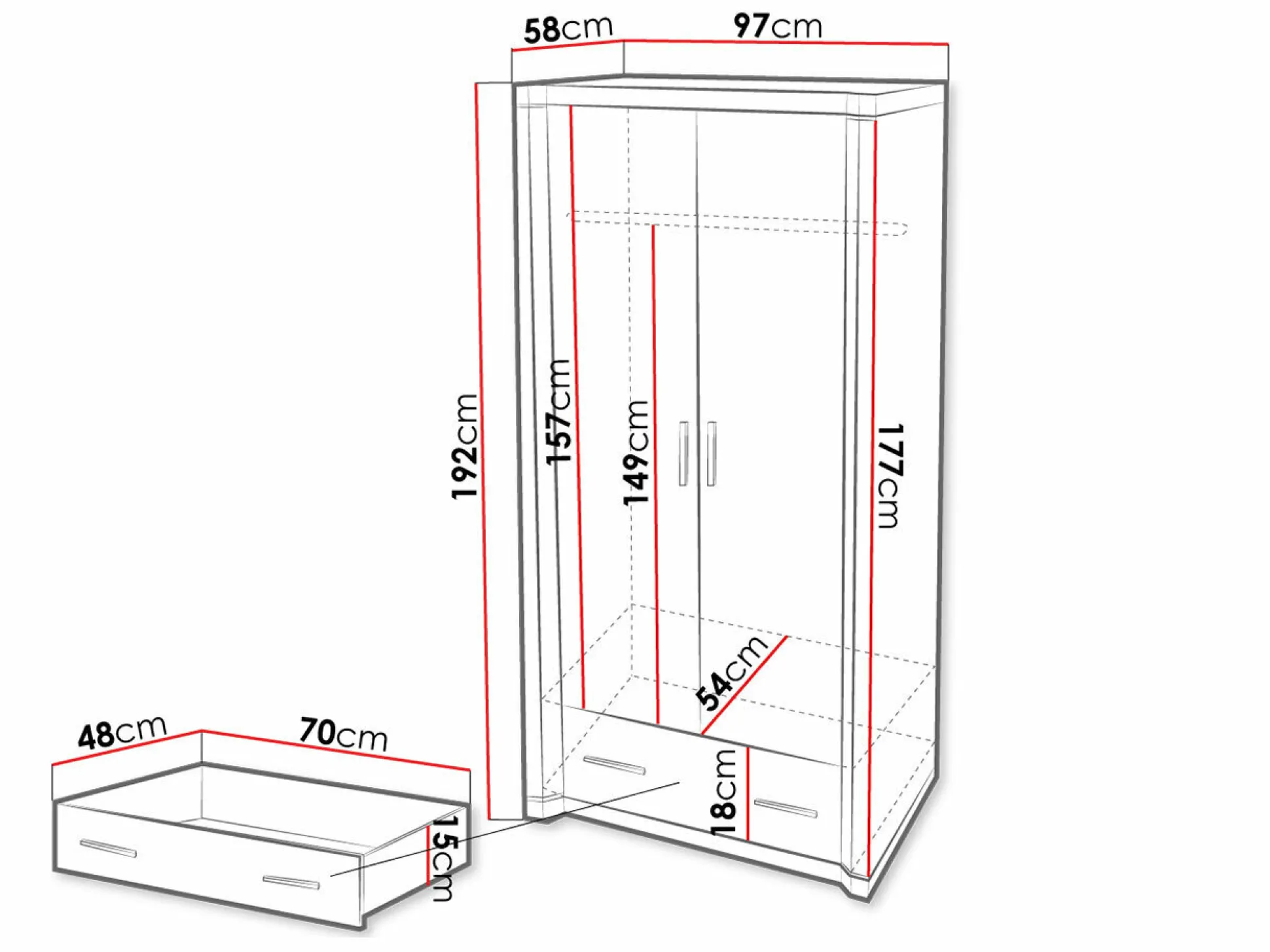 Dybde 58 cm