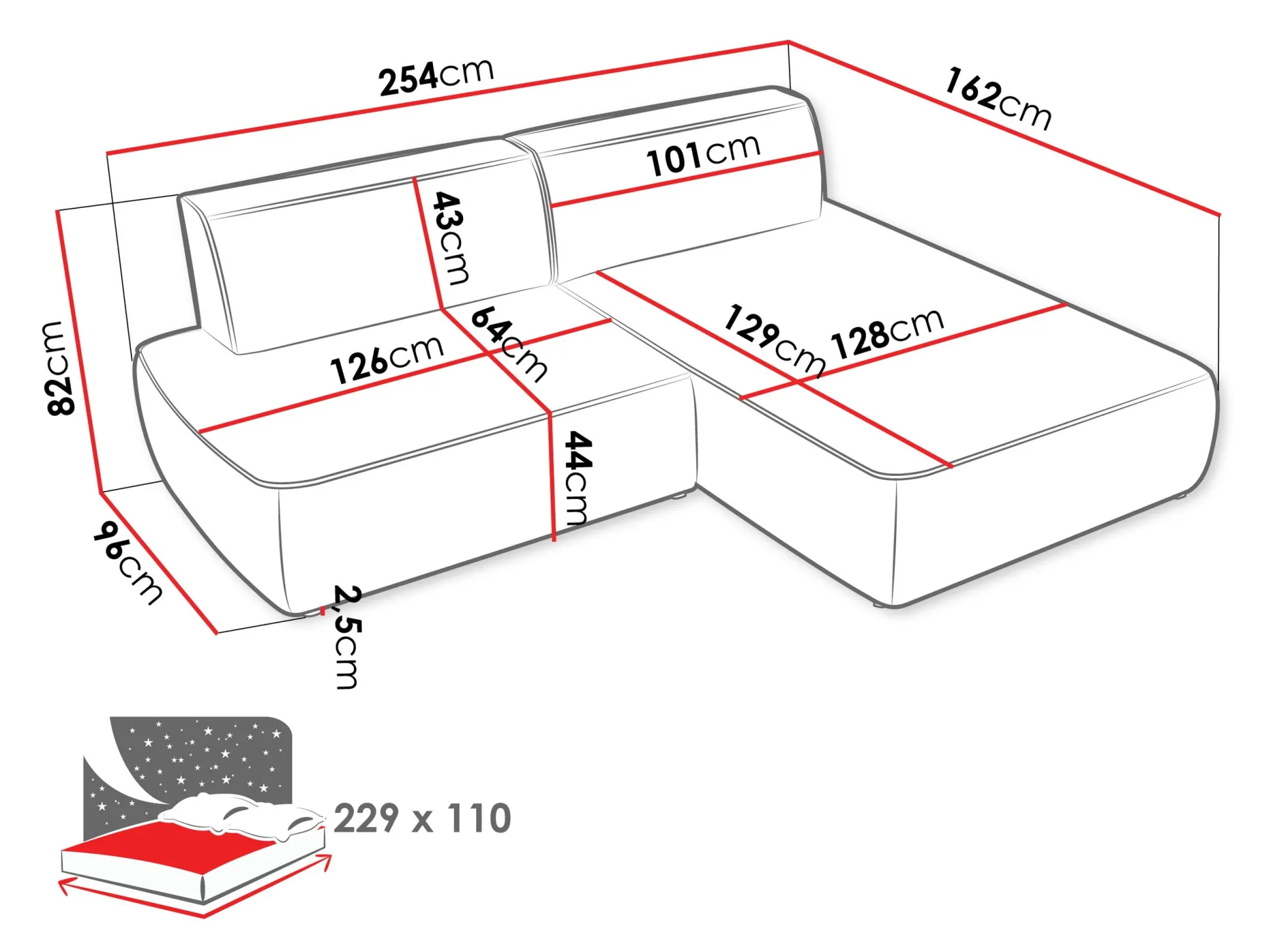 Bredde 254 cm