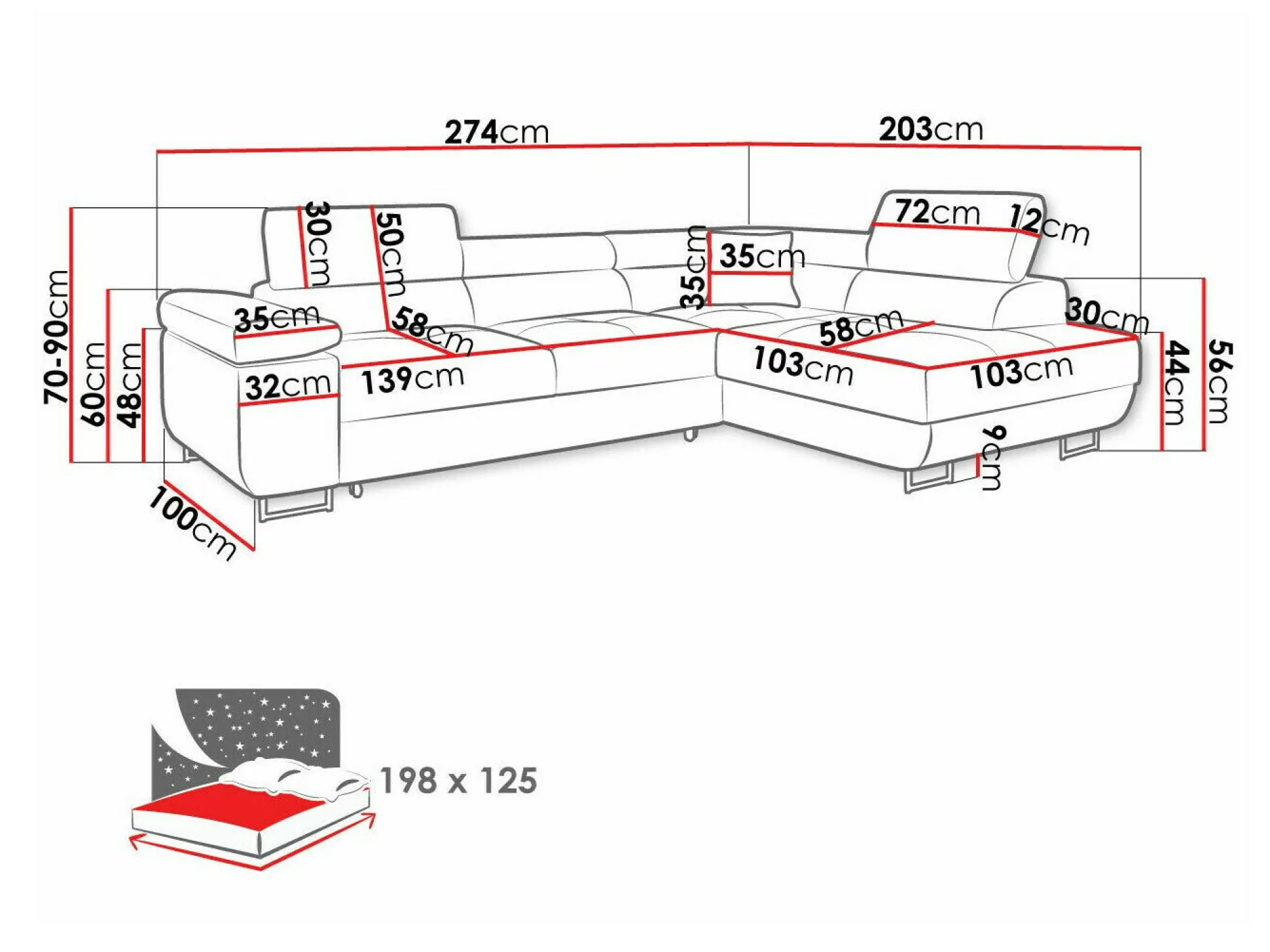 Sengekasse dimensioner:
