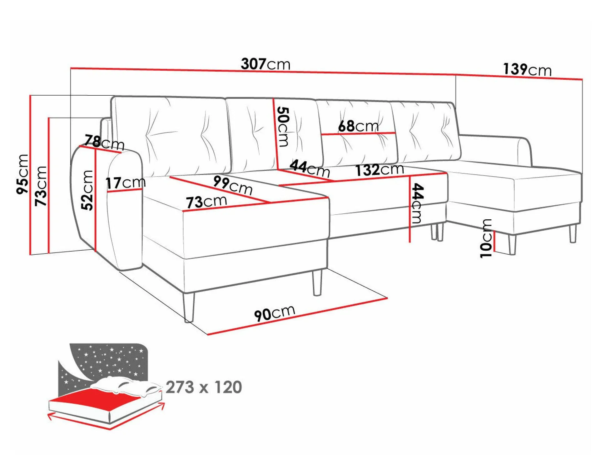 Bredde 307 cm
