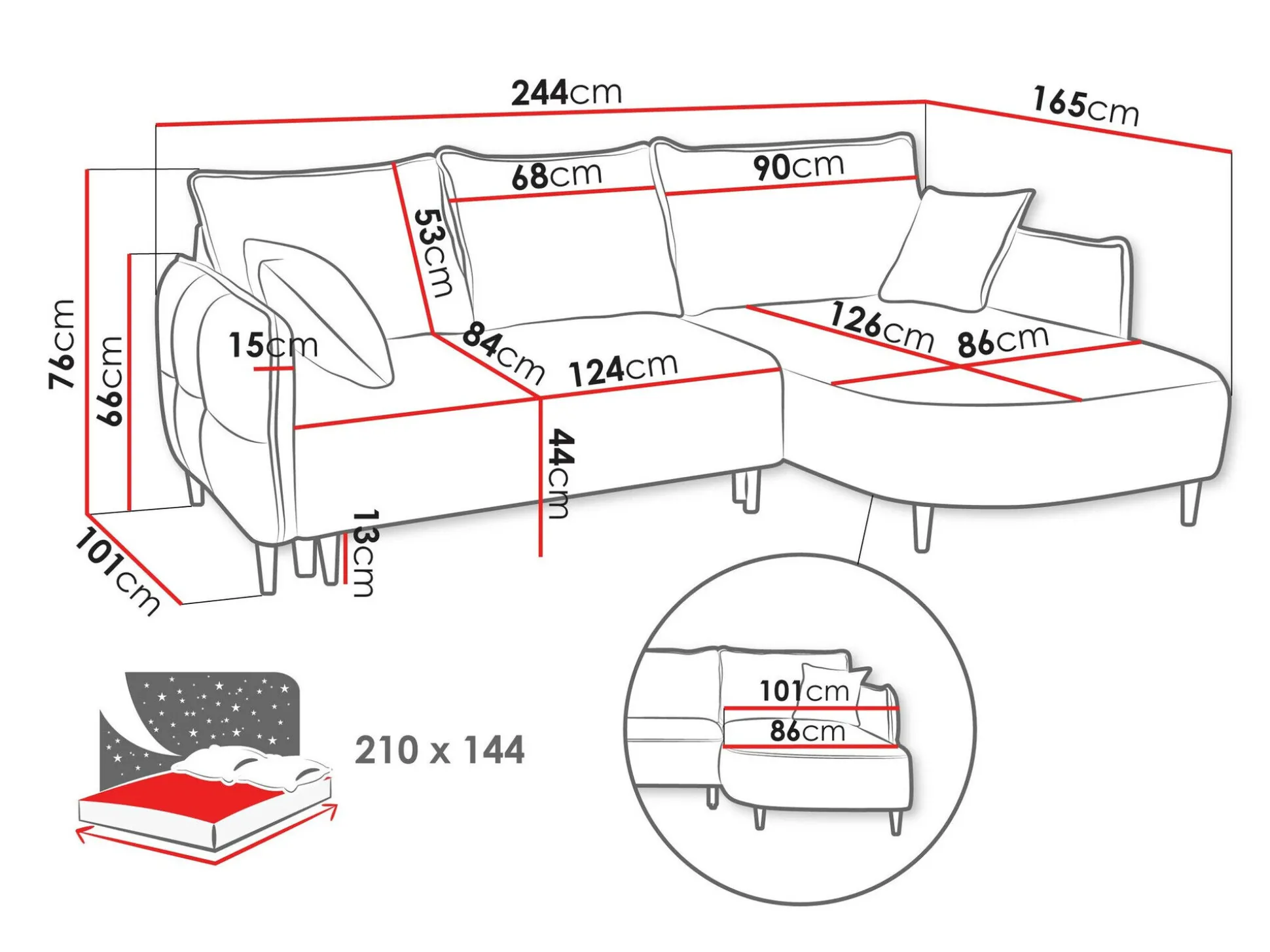 Længde på soveområde: