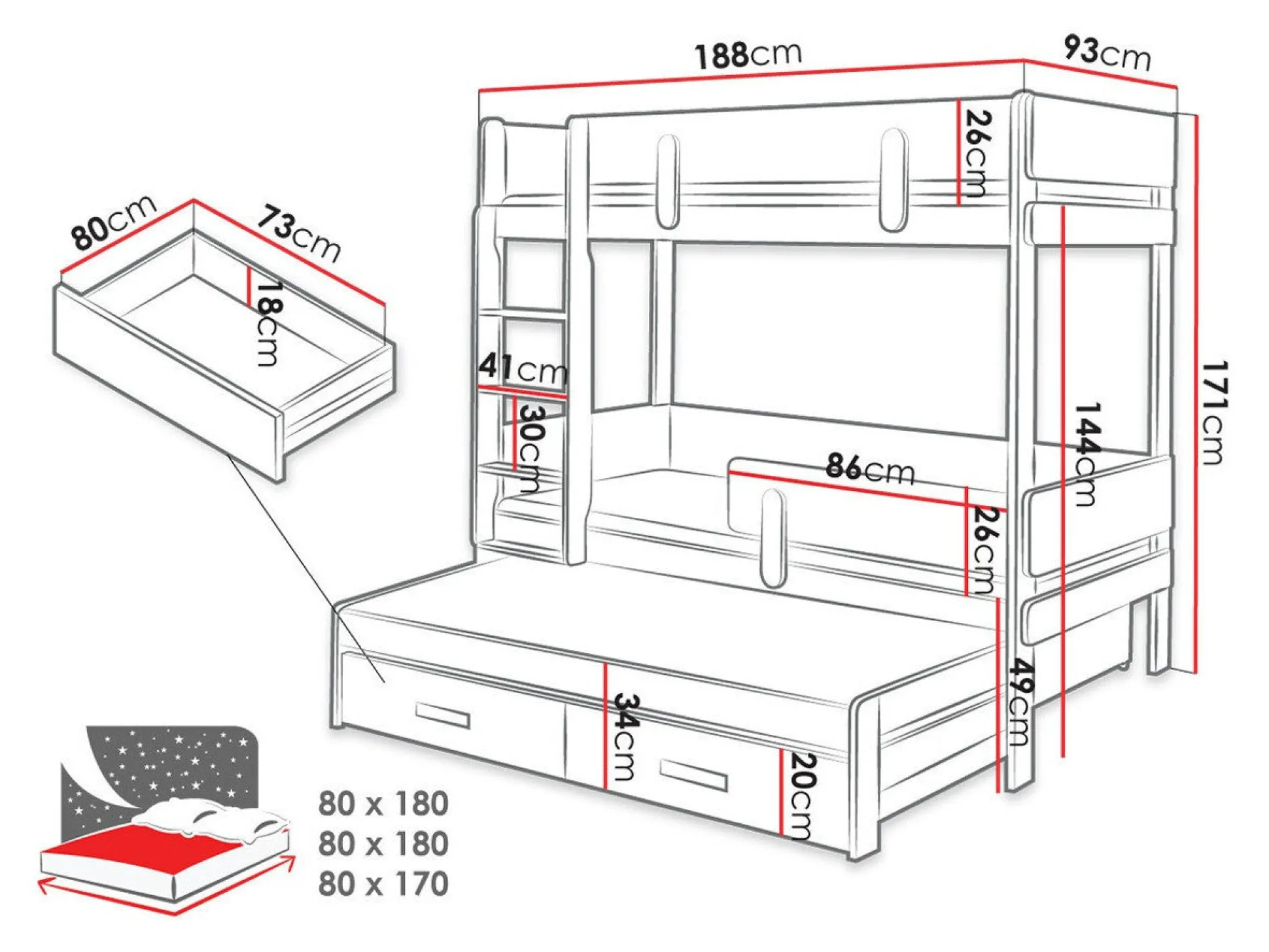 - 80 x 170 cm