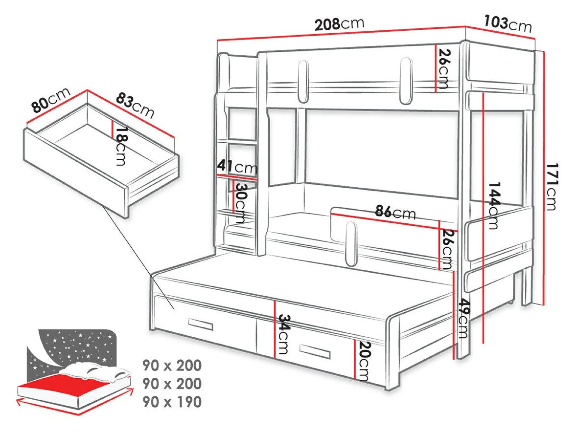 - 90 x 190 cm