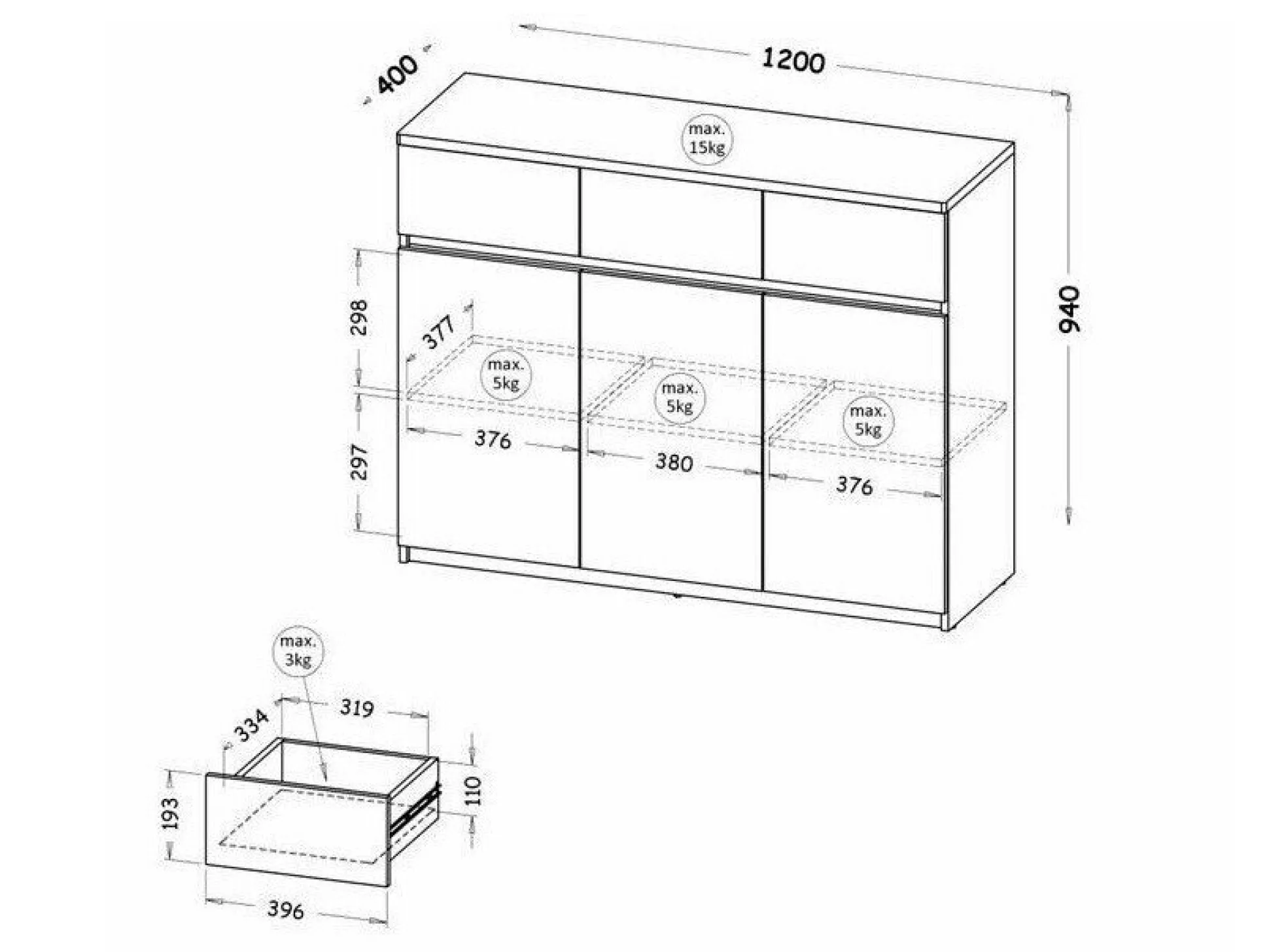 Kommode Evaropha 105 (Wotan eg + Hvid)