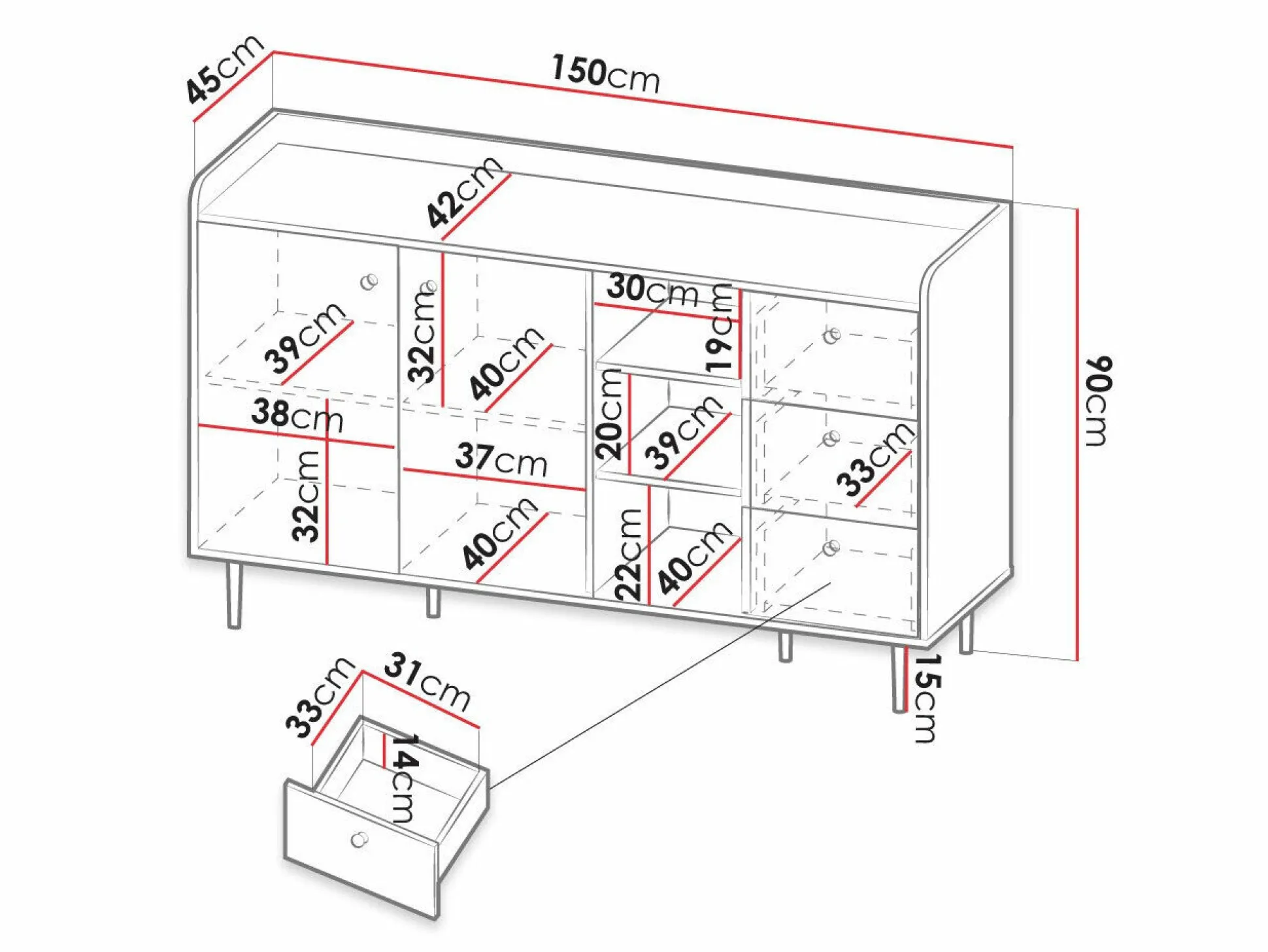 Dybde 45 cm