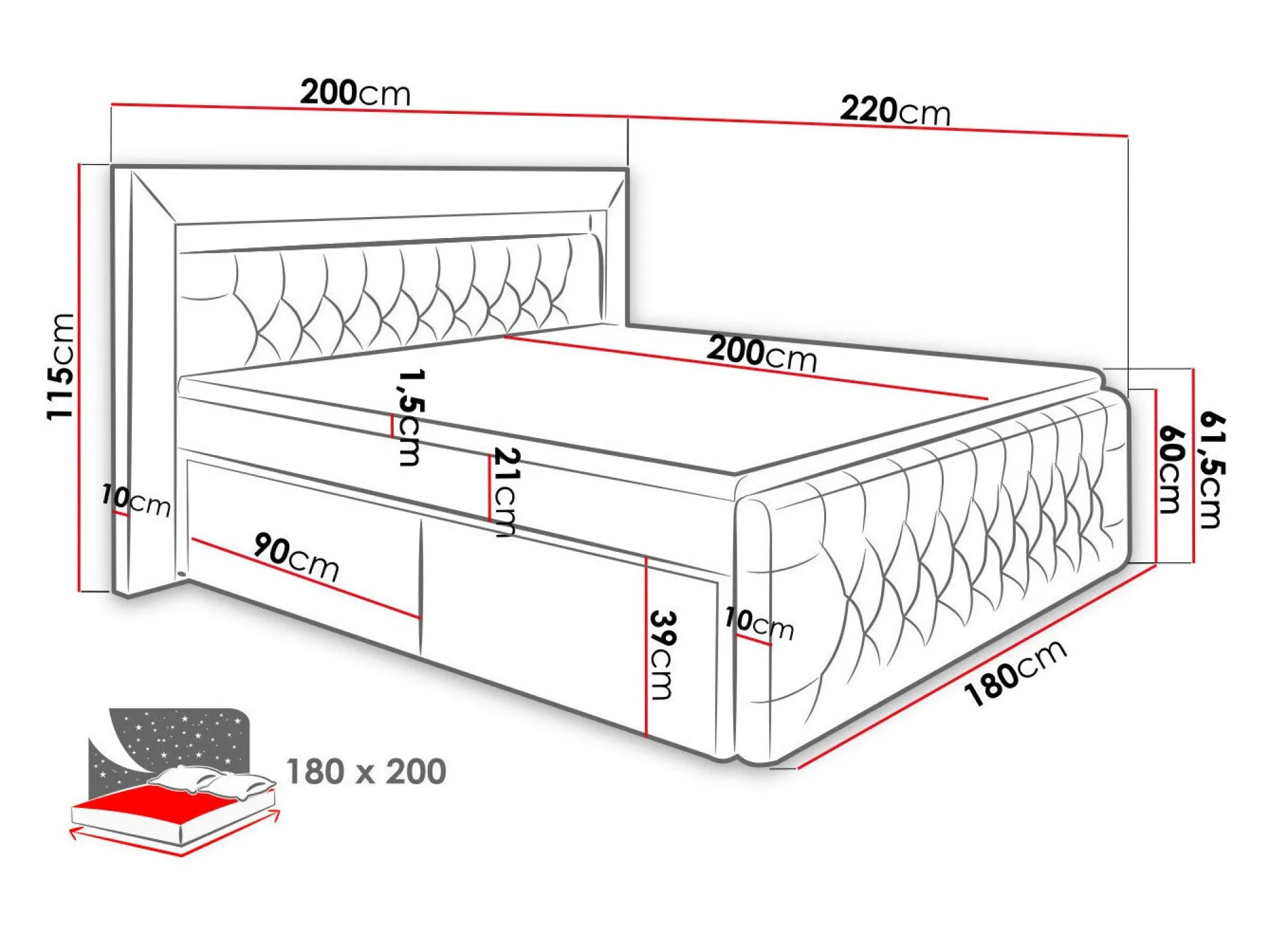 - 180 x 200 cm