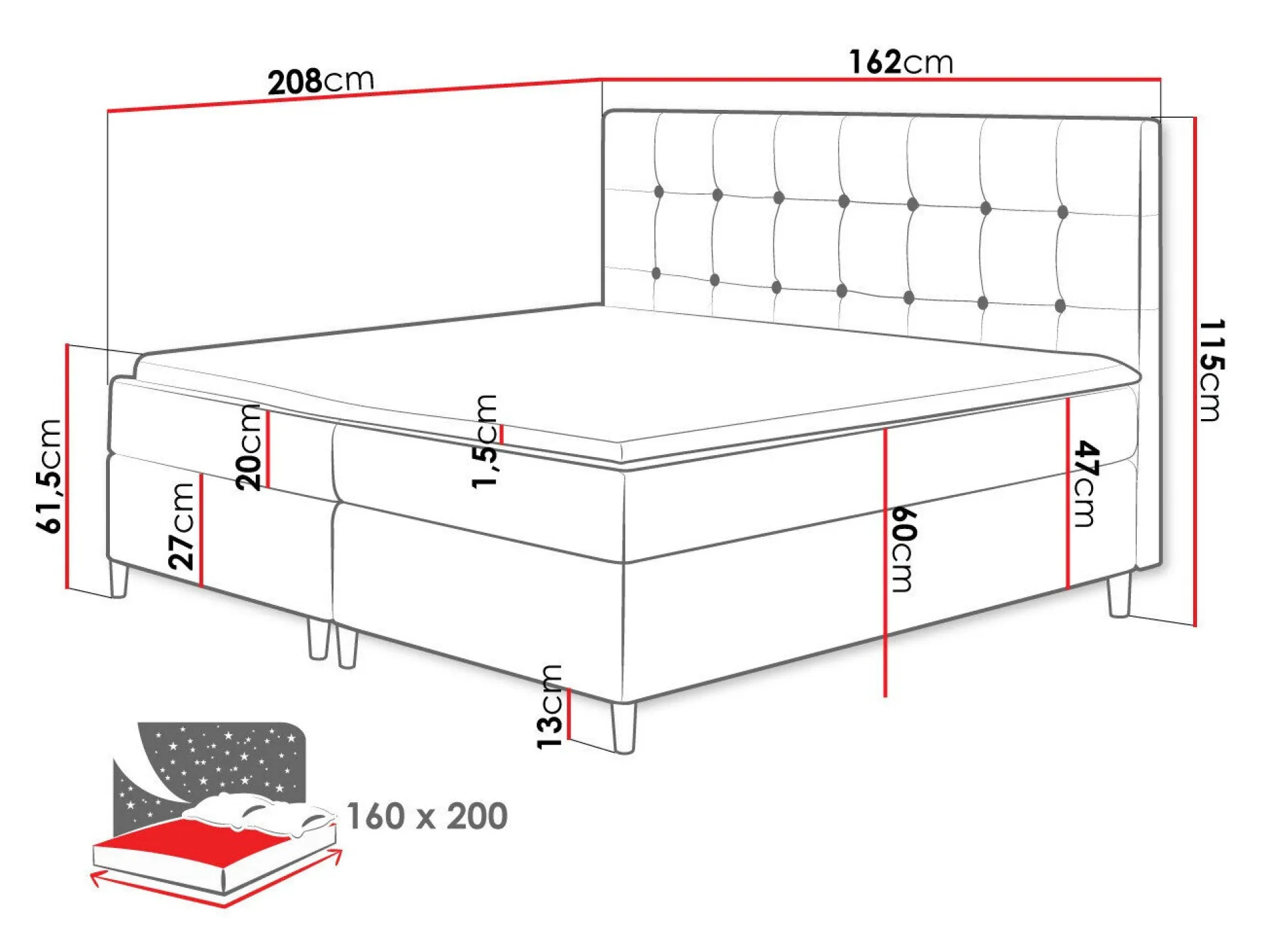 - 160 x 200 cm