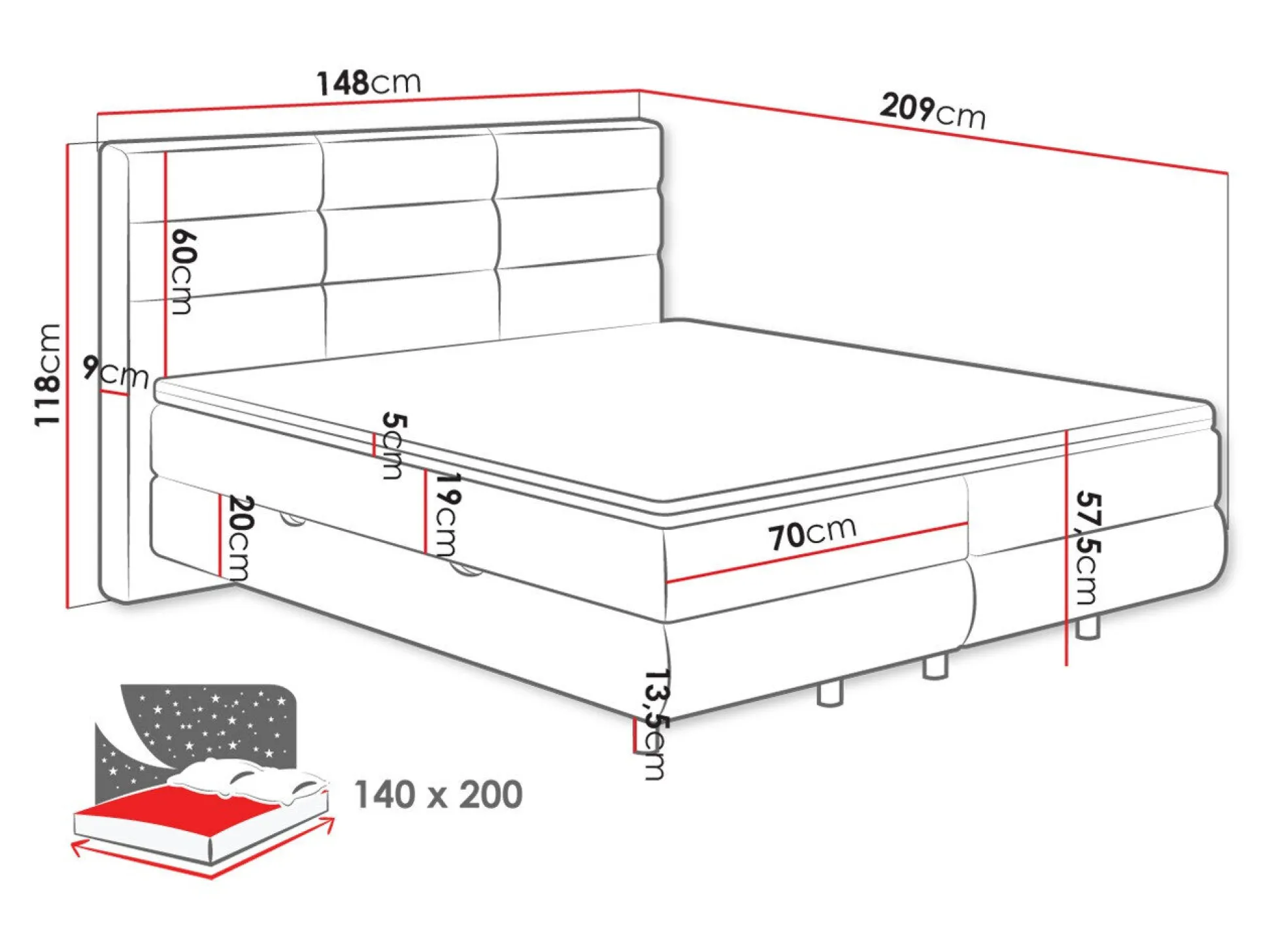 - 140 x 200 cm