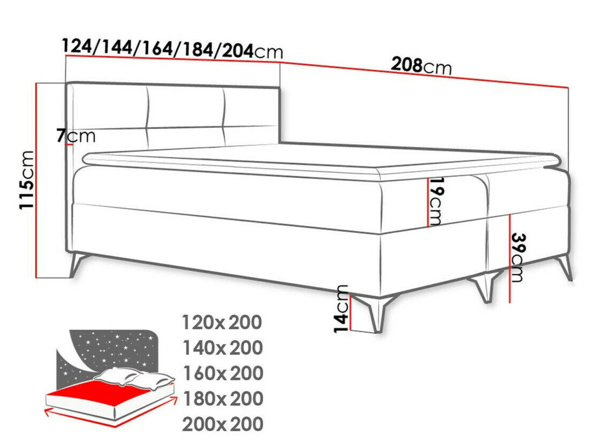 Sengekasse dimensioner: