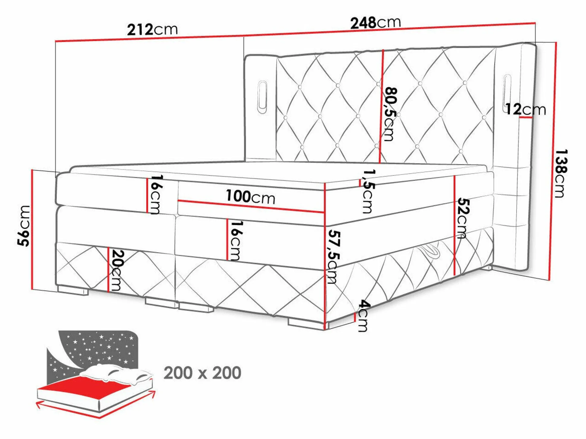 142 x 248 x 12 cm
