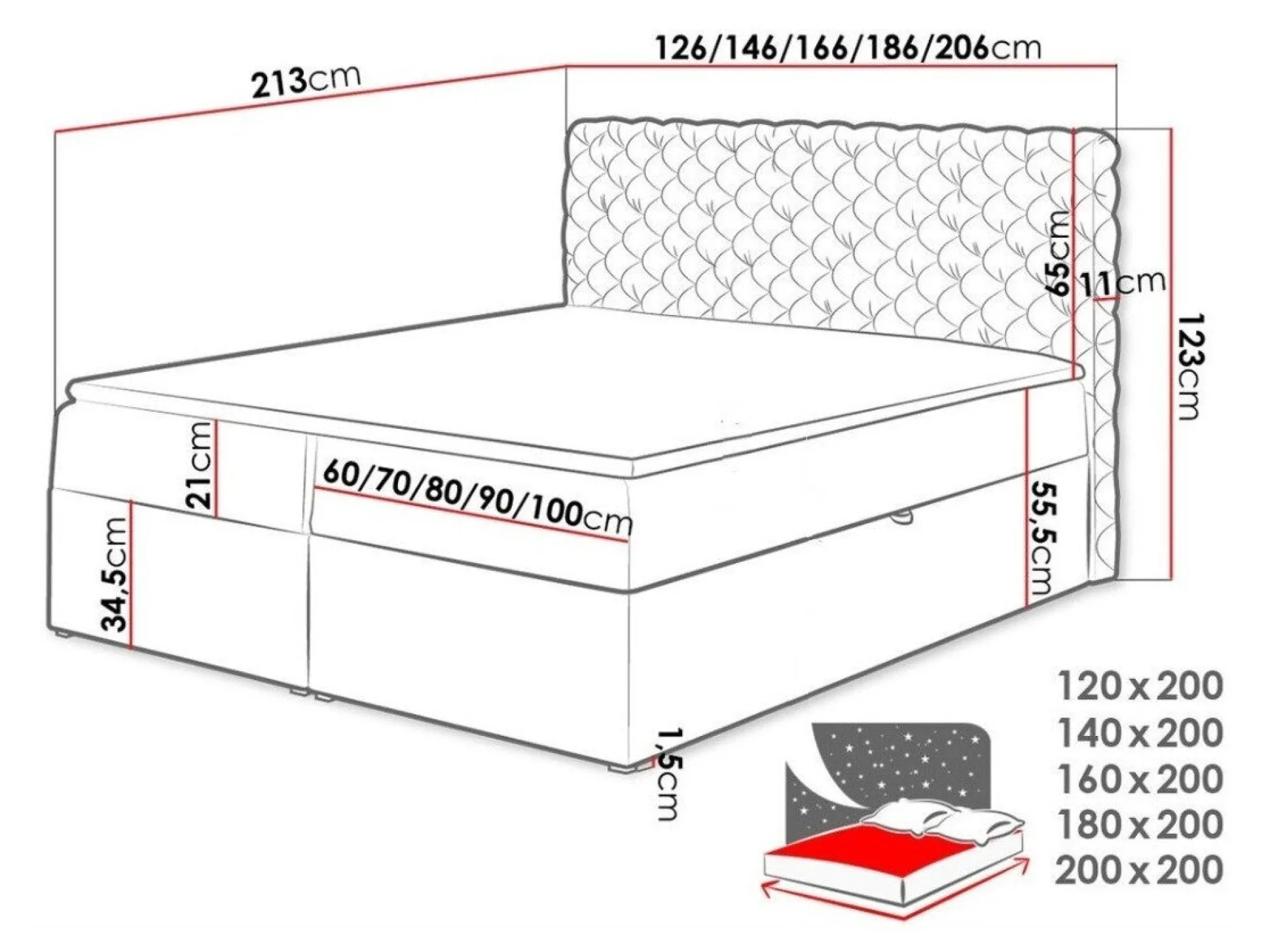 - 180 x 200 cm
