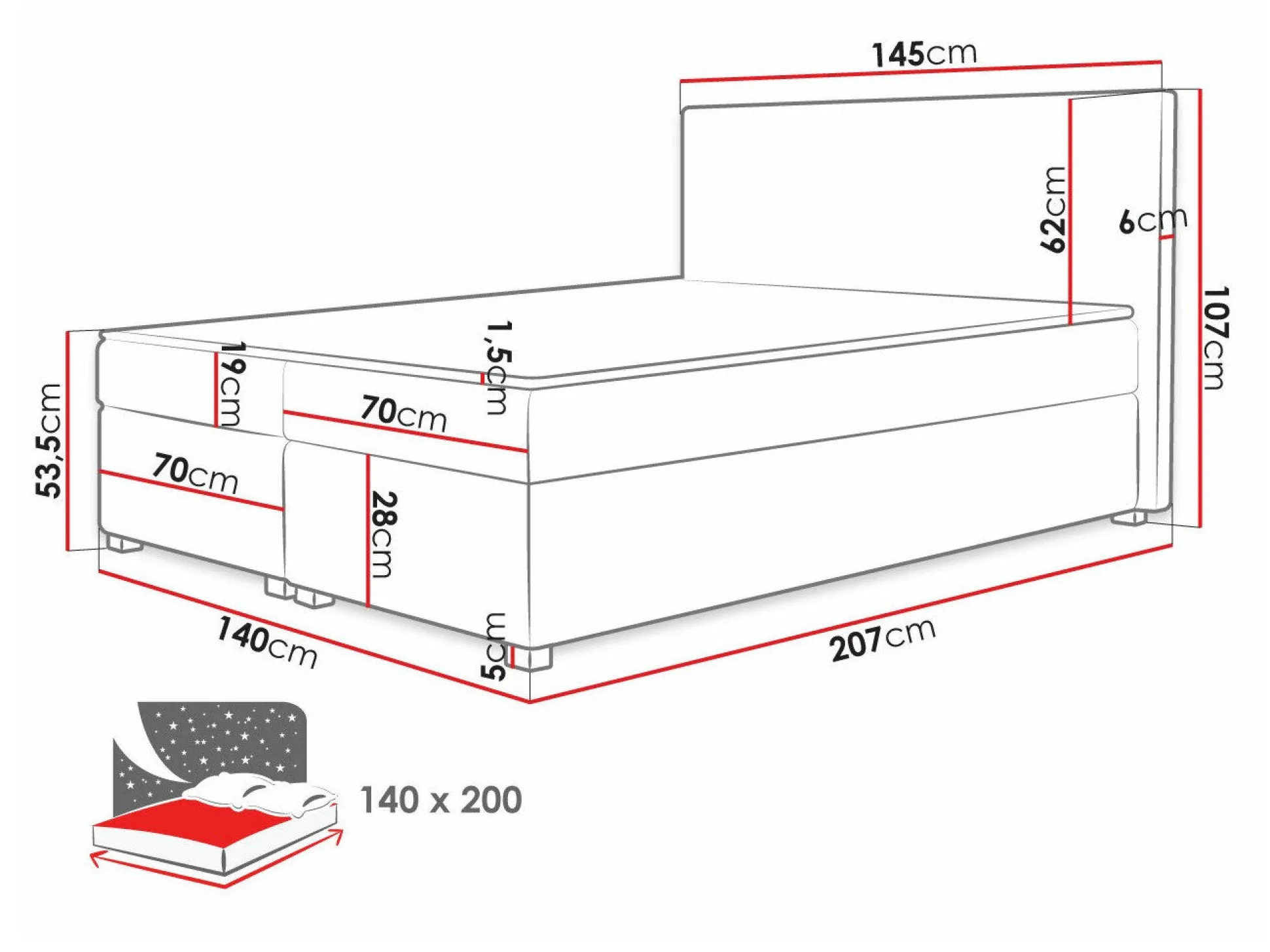 - 140 x 200 cm