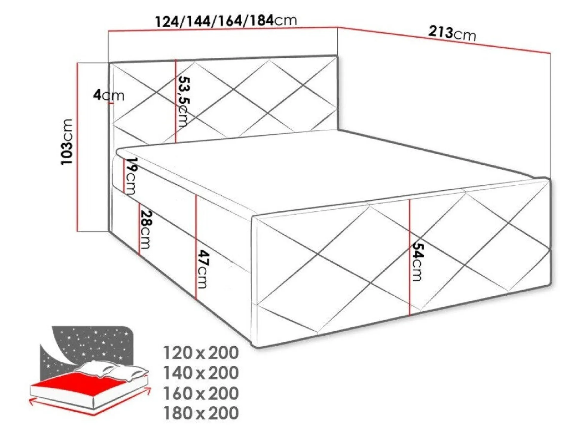 Sengekasse dimensioner: