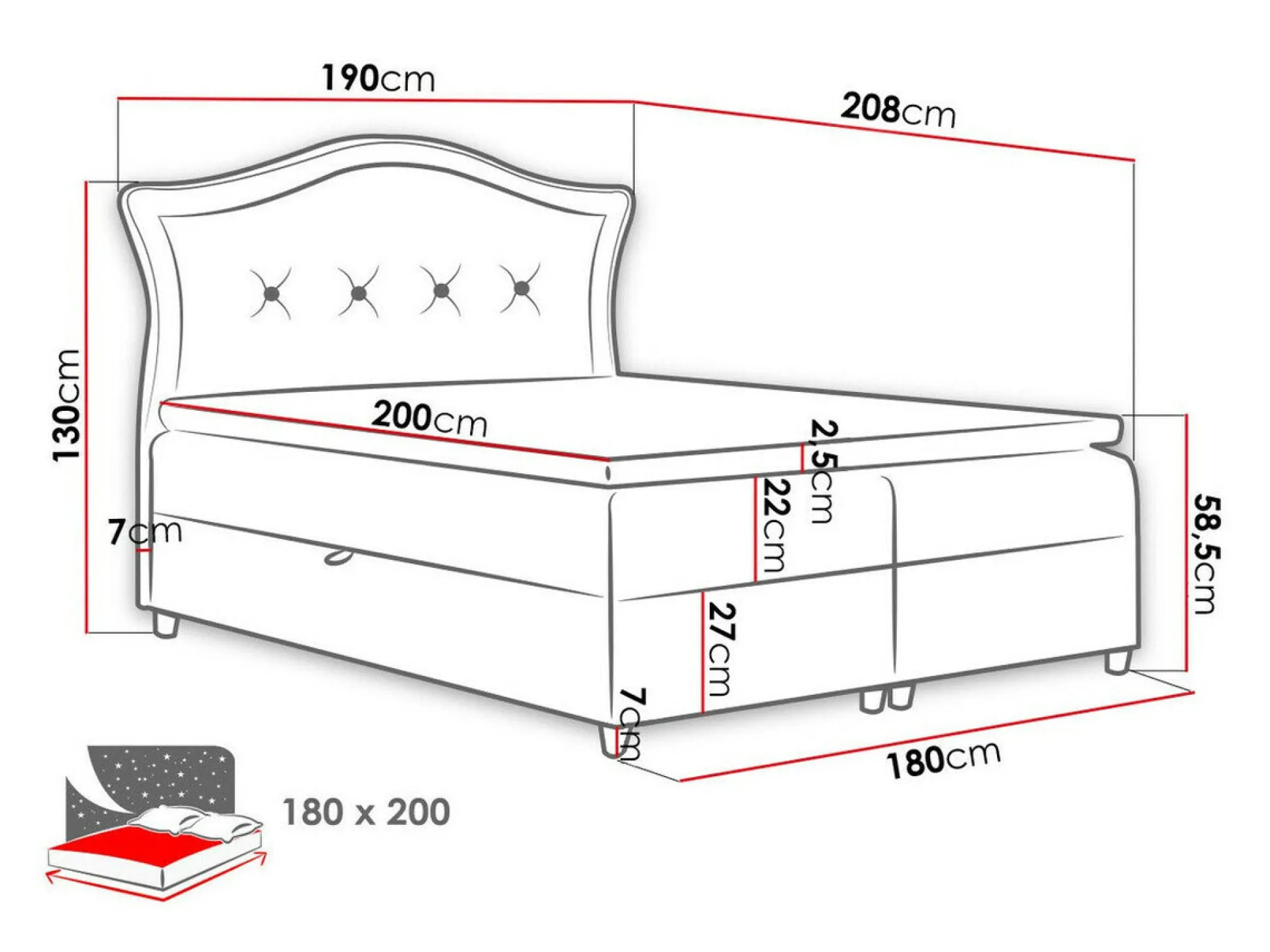 - 180 x 200 cm