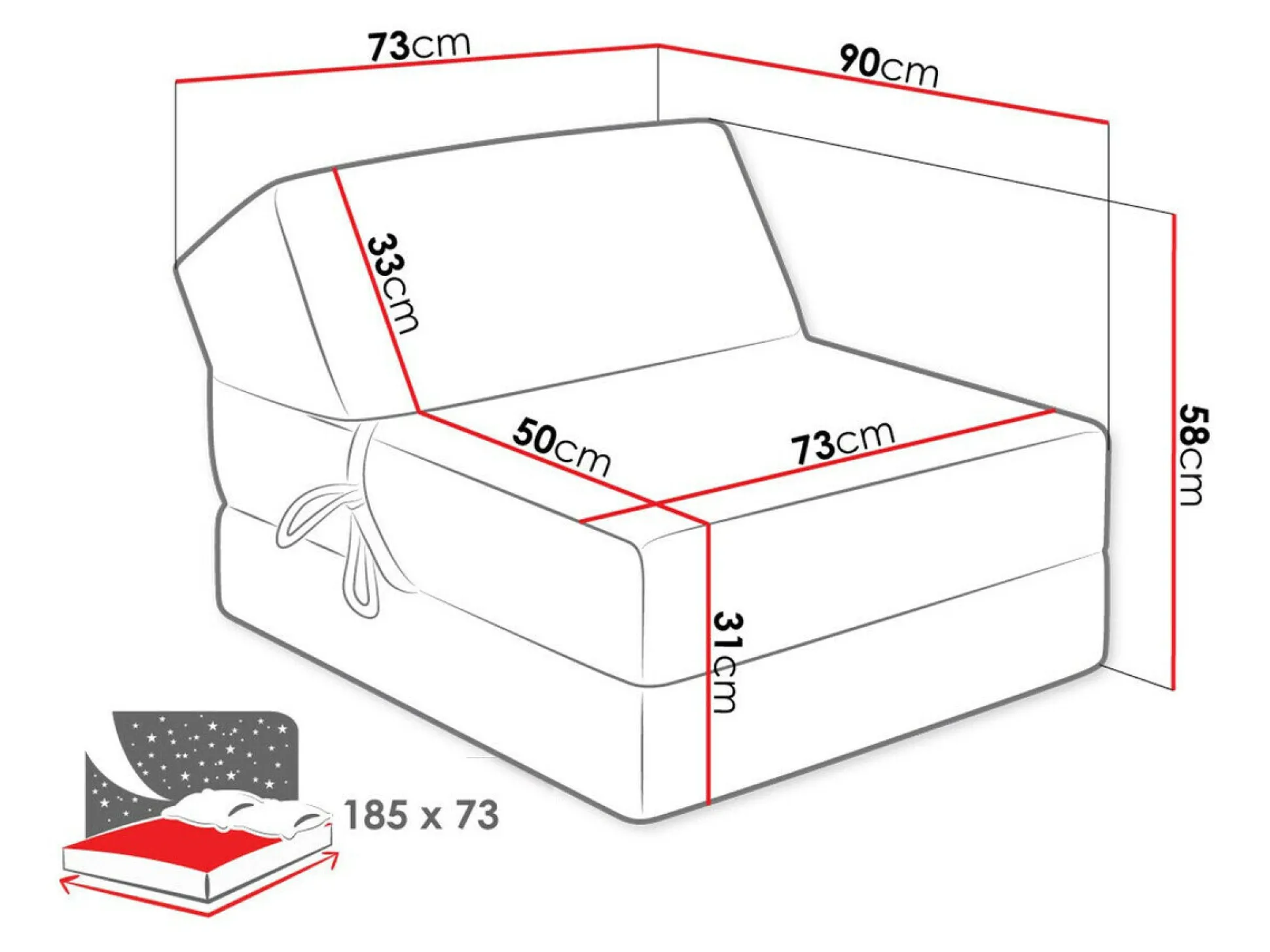Længde på soveområde: