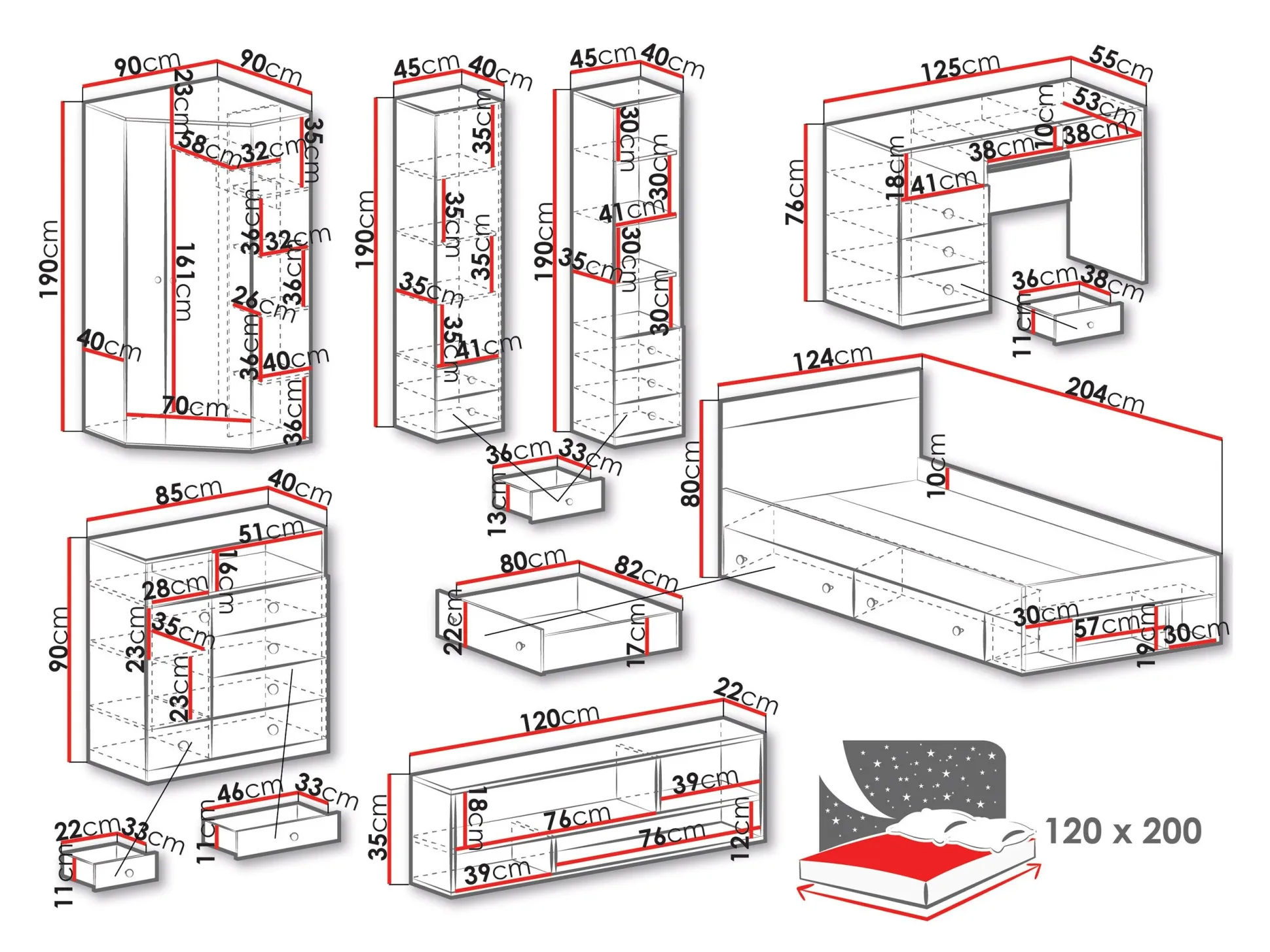 80 x 124 x 204 cm