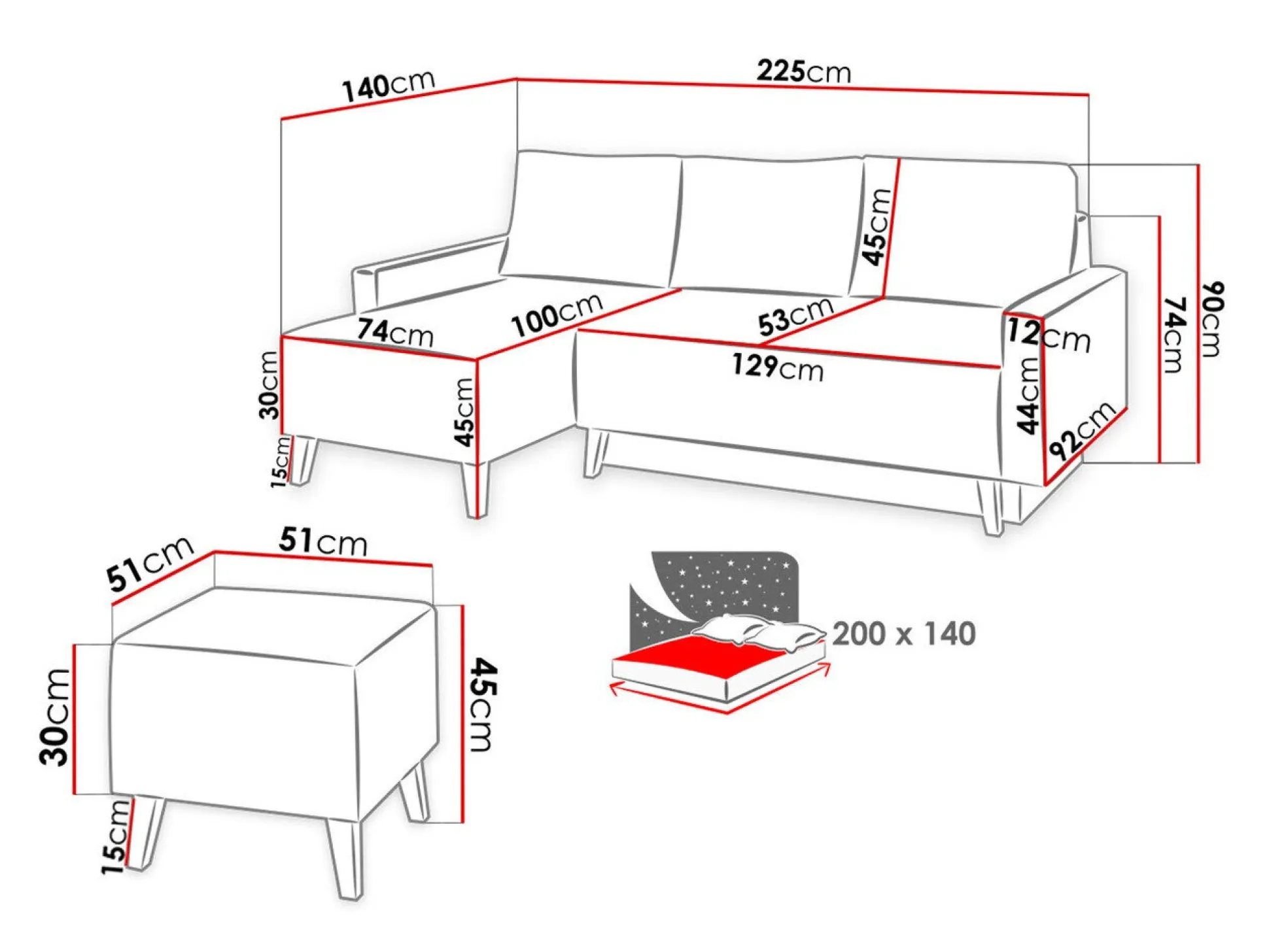 Hjørnesofa dimensioner: