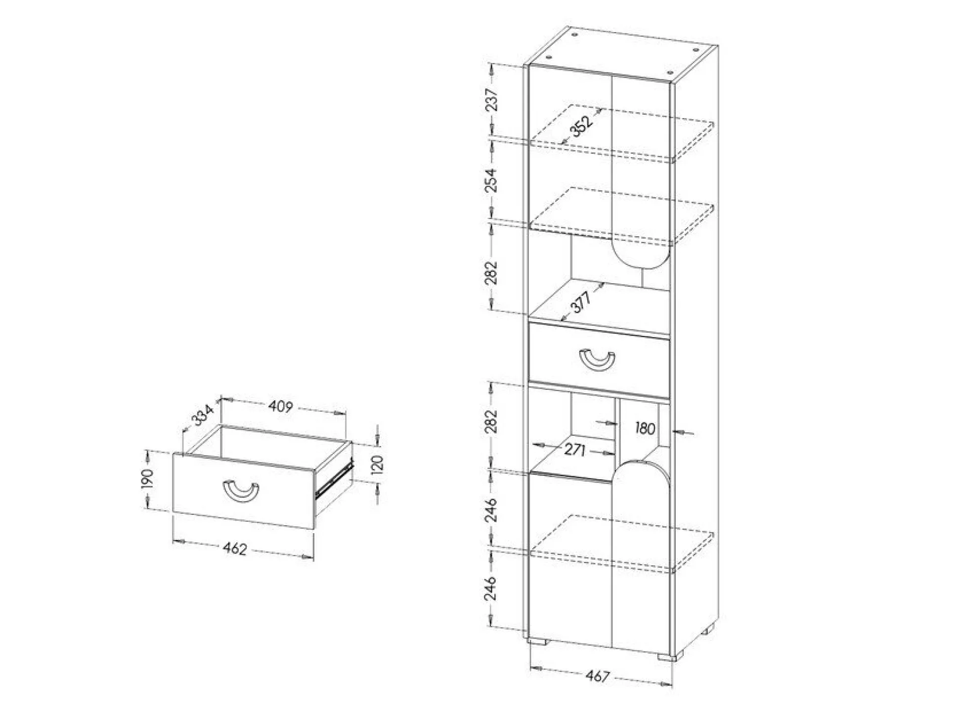 - Med skuffer