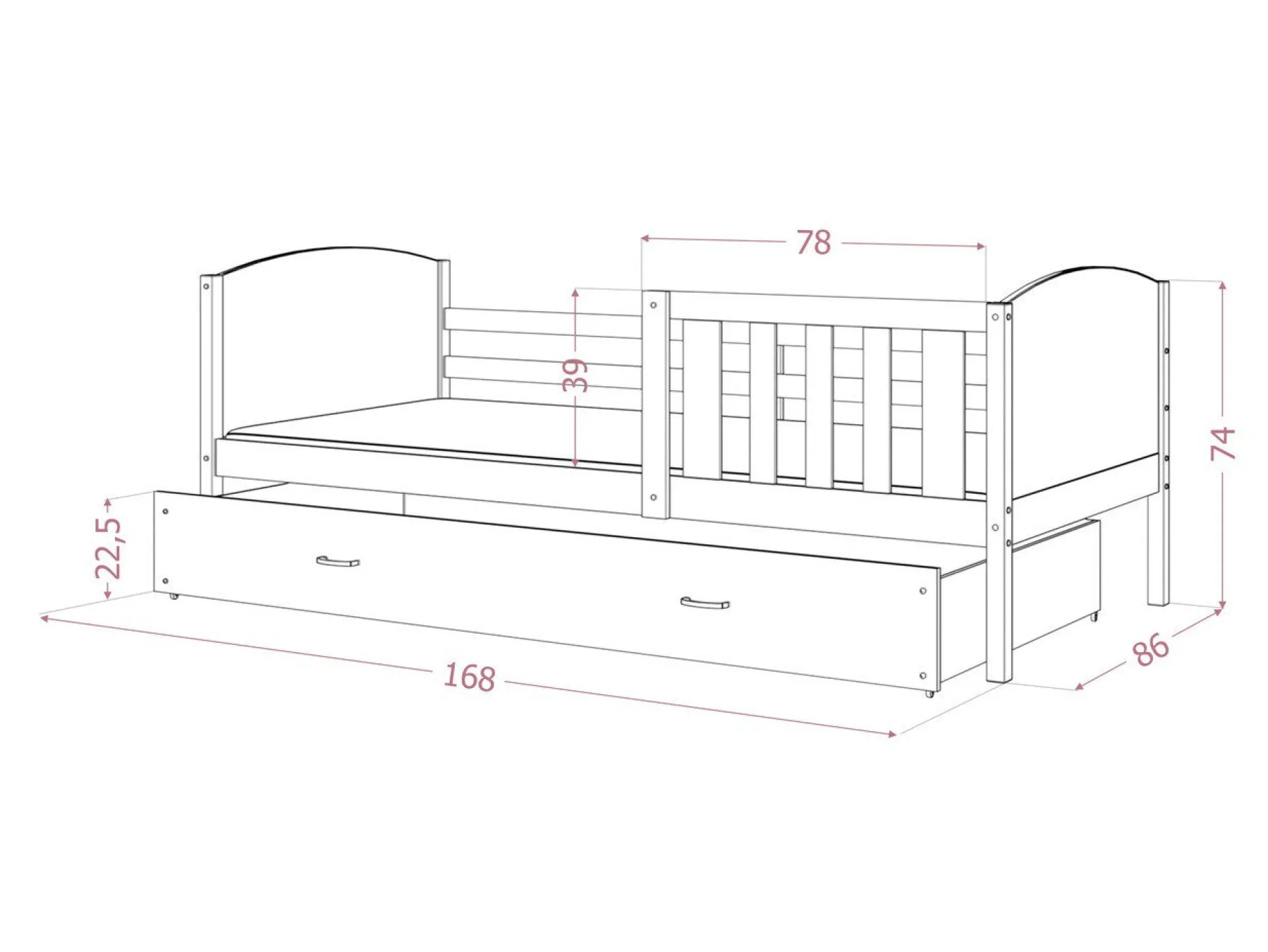 Tilpasset til madrassen 80 x 160 cm