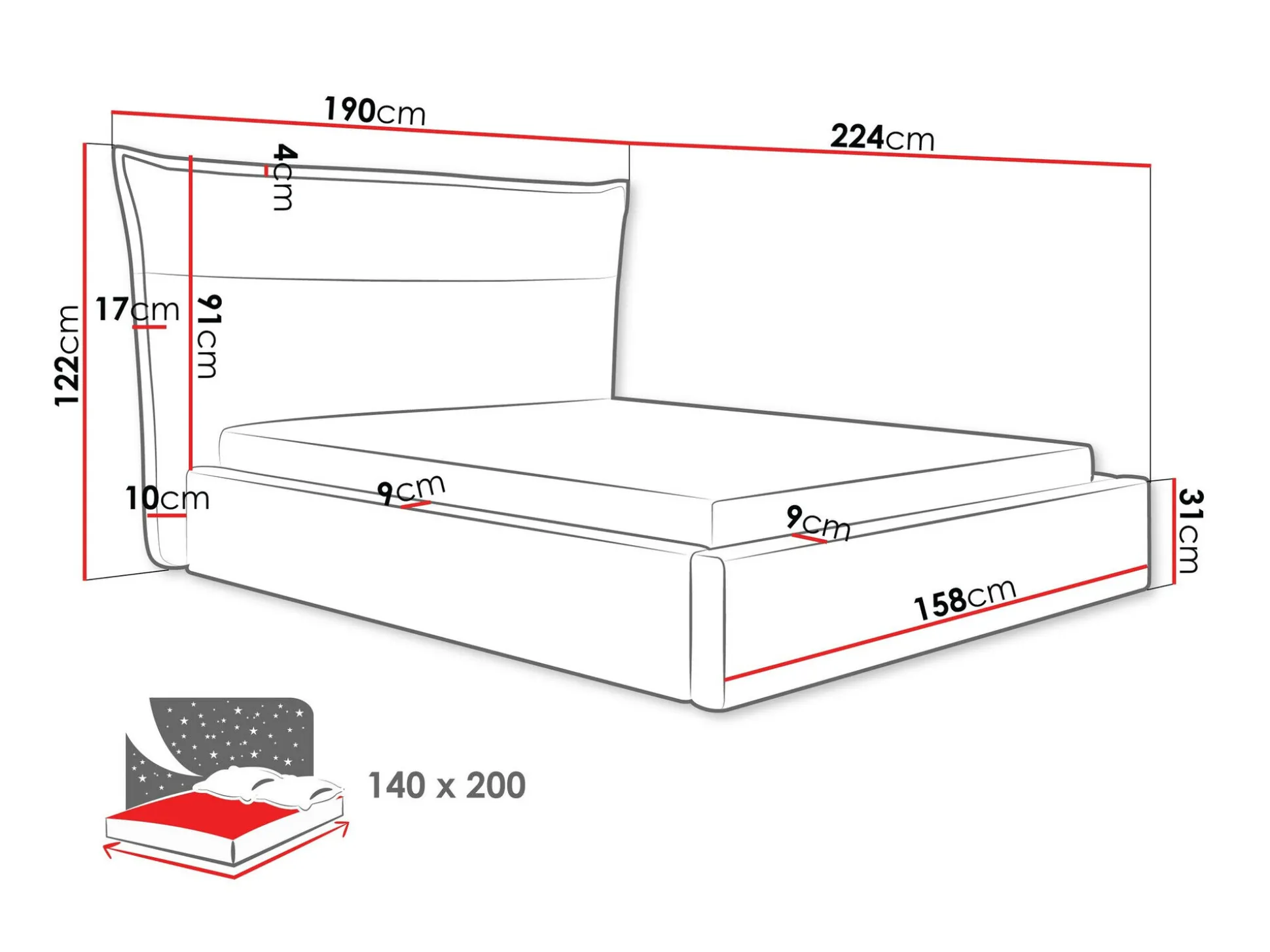 17 x 140 x 200 cm