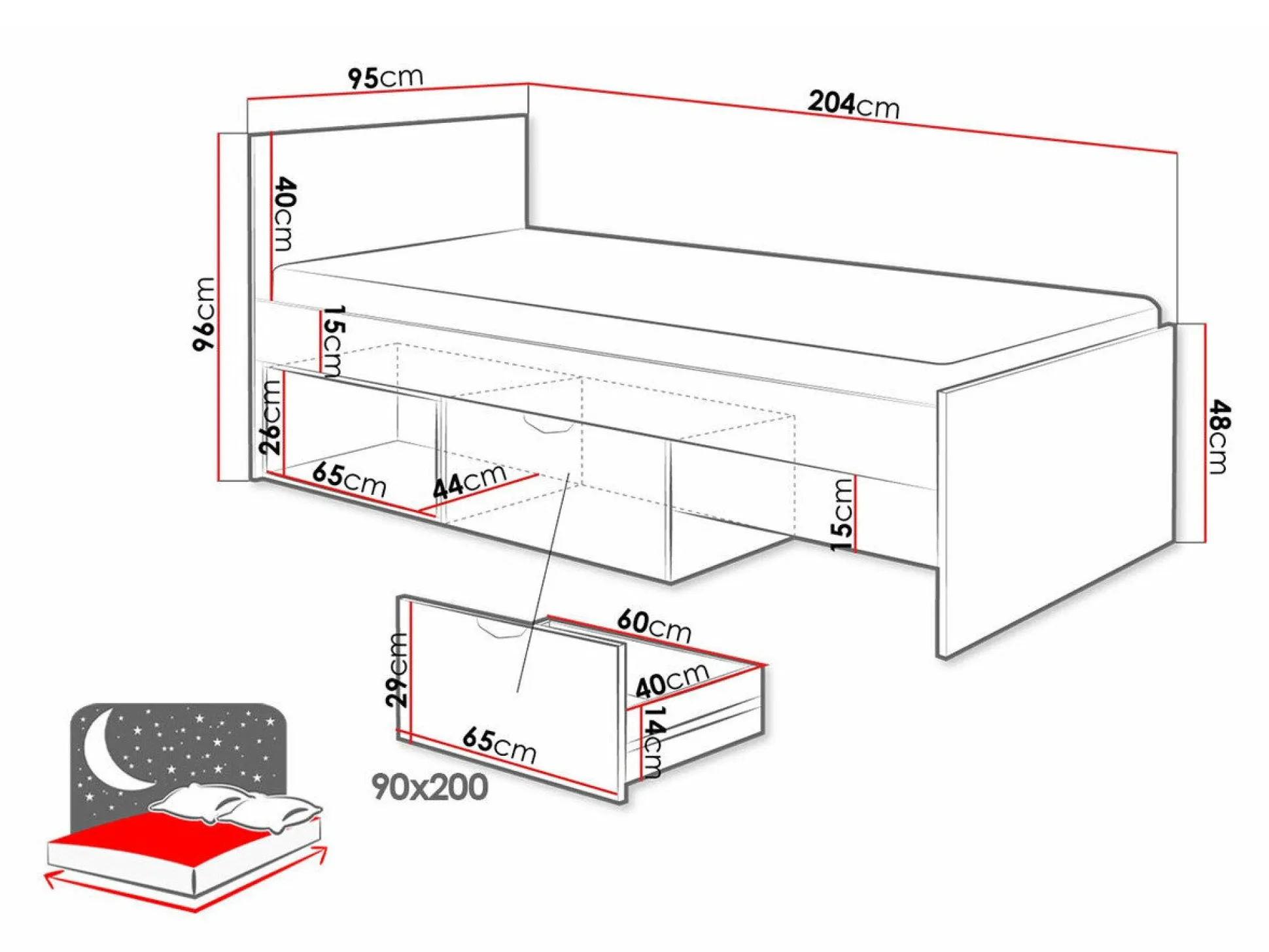 Sengekasse dimensioner: