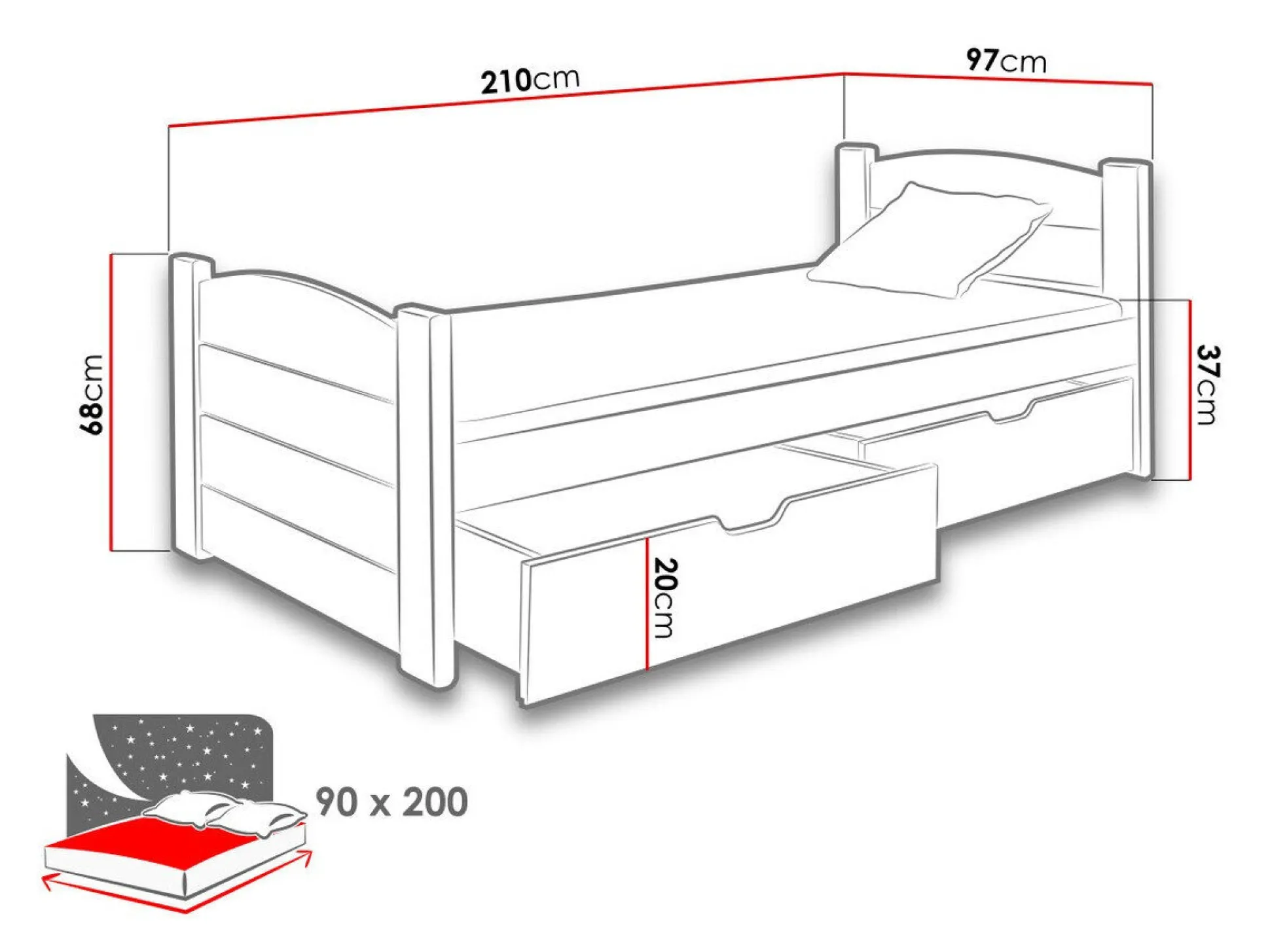 - 90 x 200 cm
