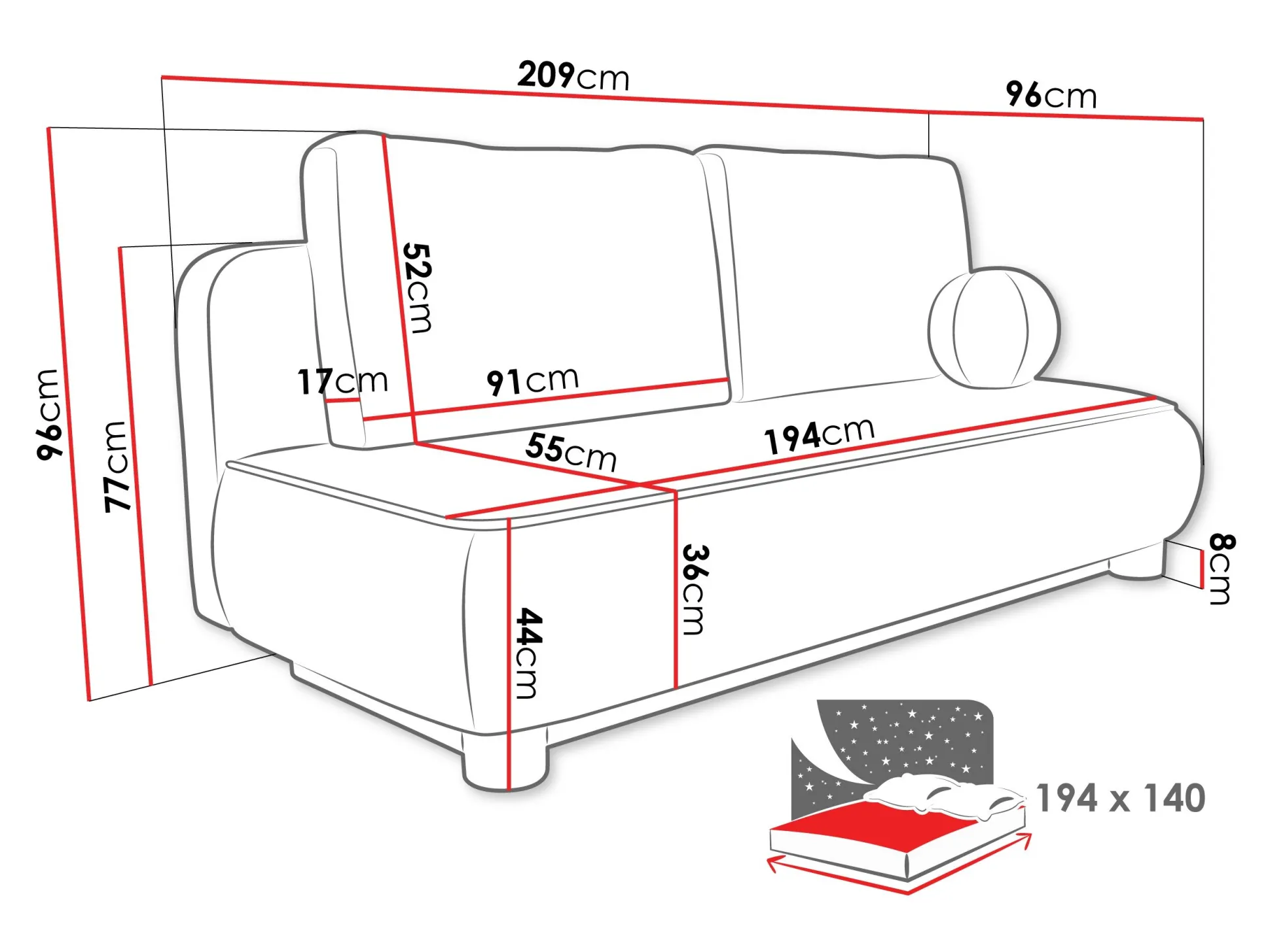 Bredde 209 cm