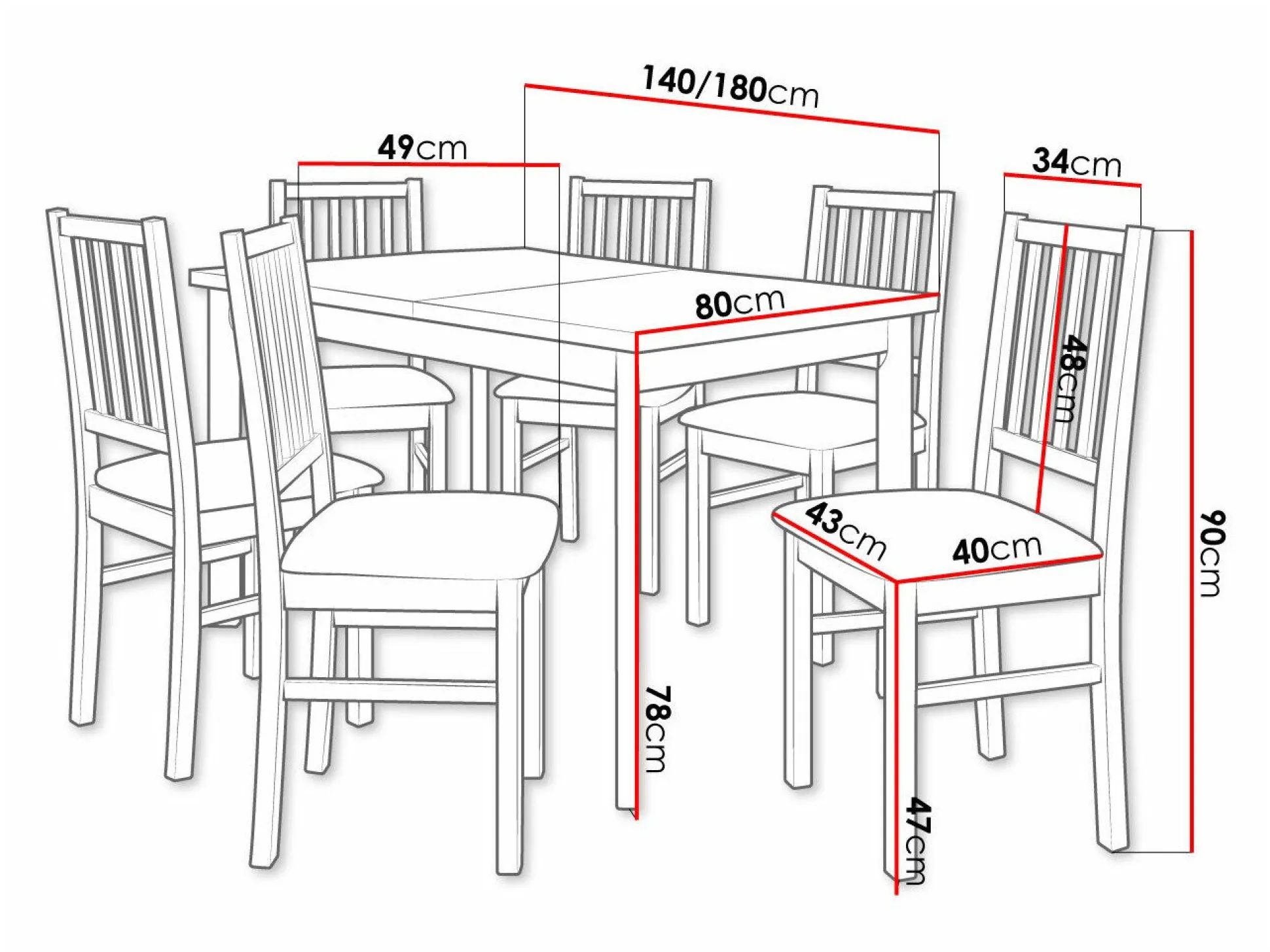 Bordbredde 80 cm