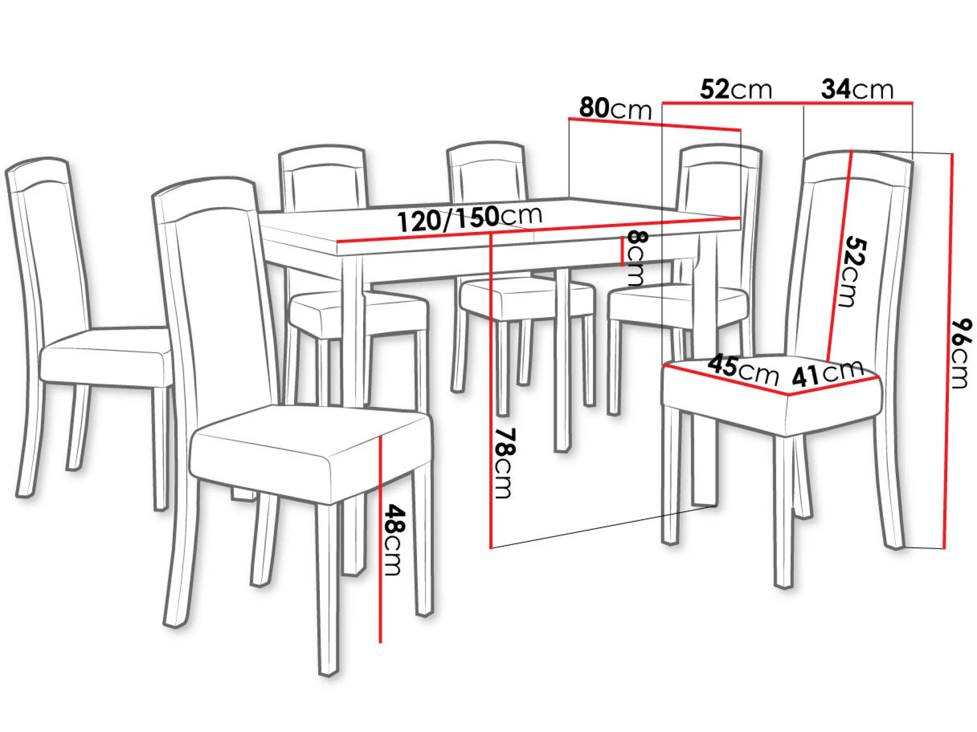 Bordbredde 80 cm