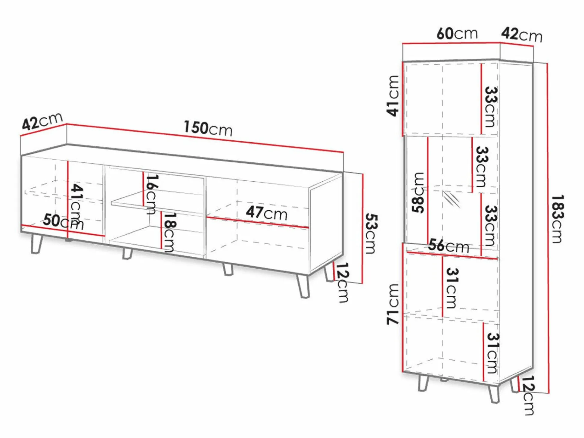 53 x 150 x 42 cm