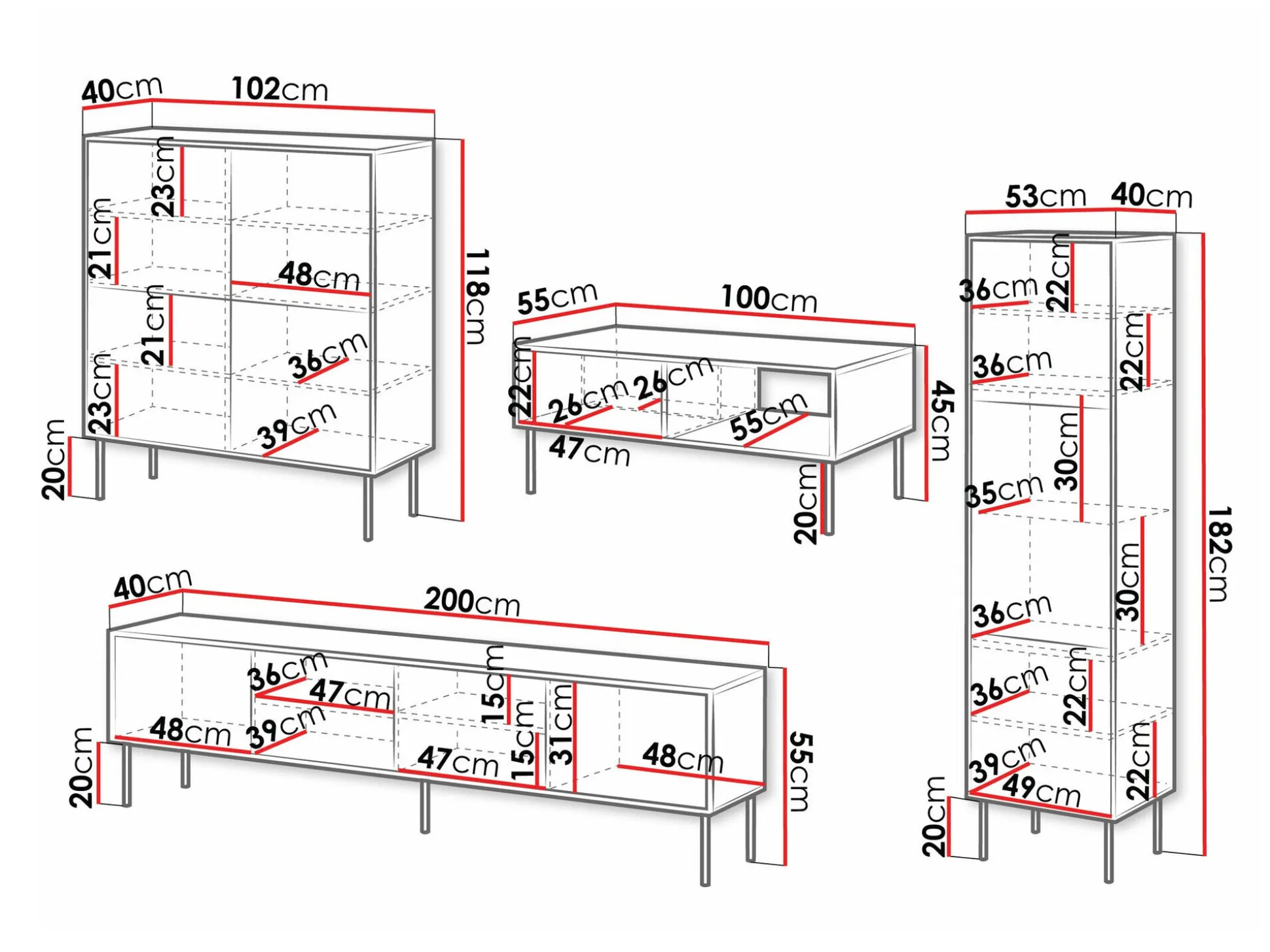 55 x 200 x 40 cm