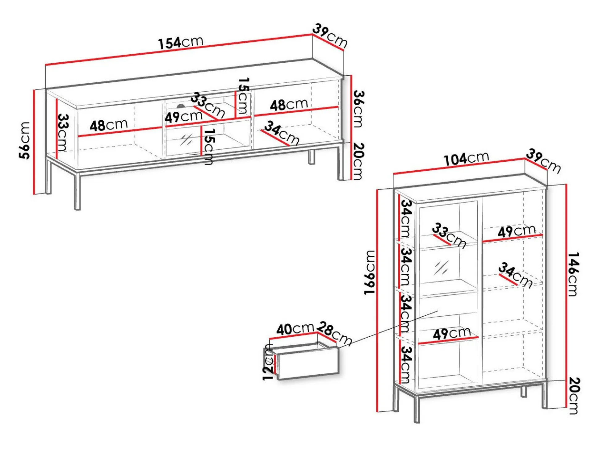 56 x 154 x 39 cm