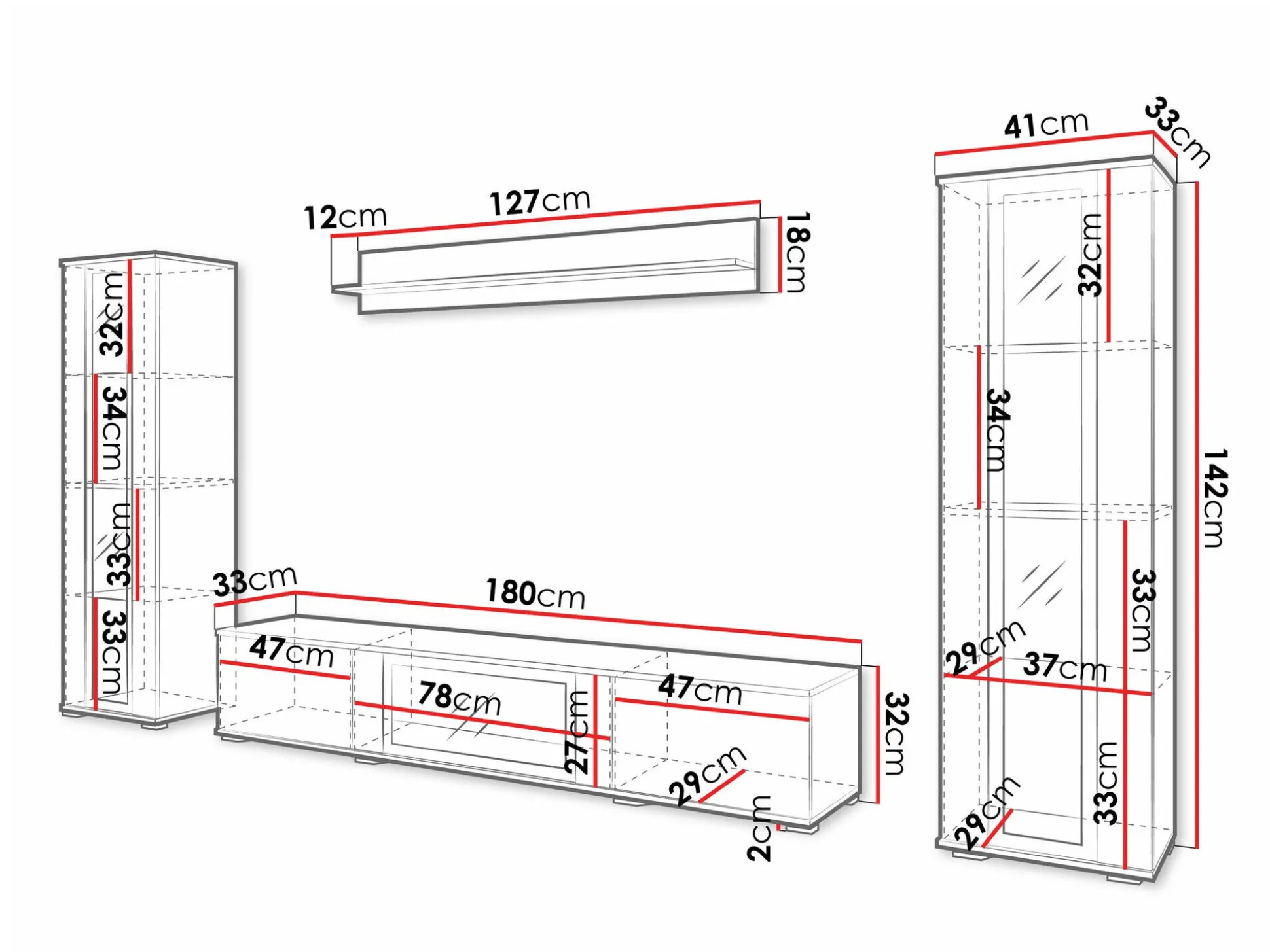 30 x 180 x 33 cm