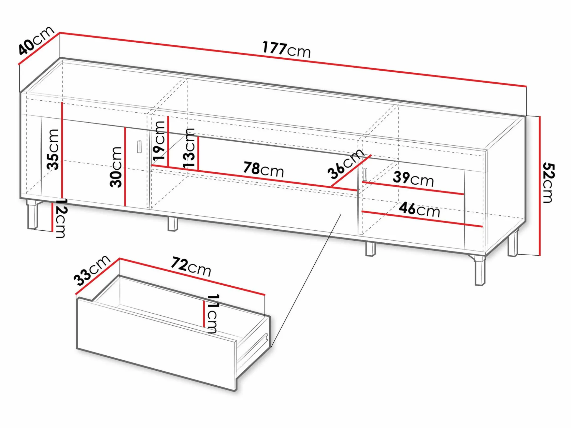 - Med skuffer og døre