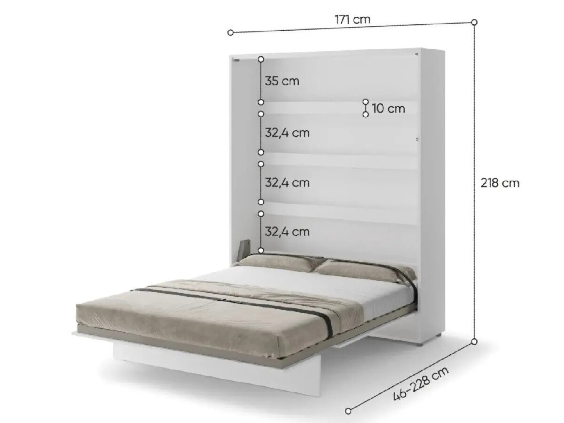 - Sengen skal fastgøres til væggen.